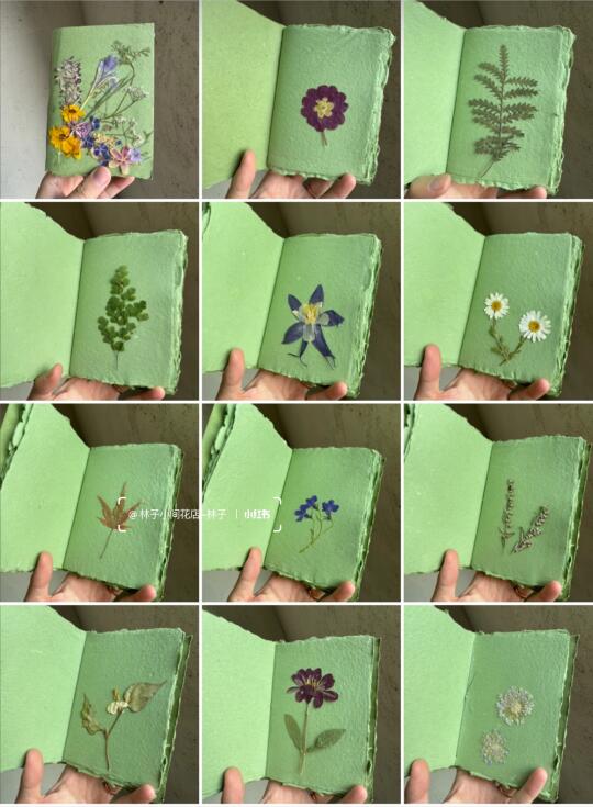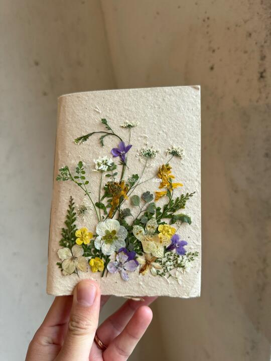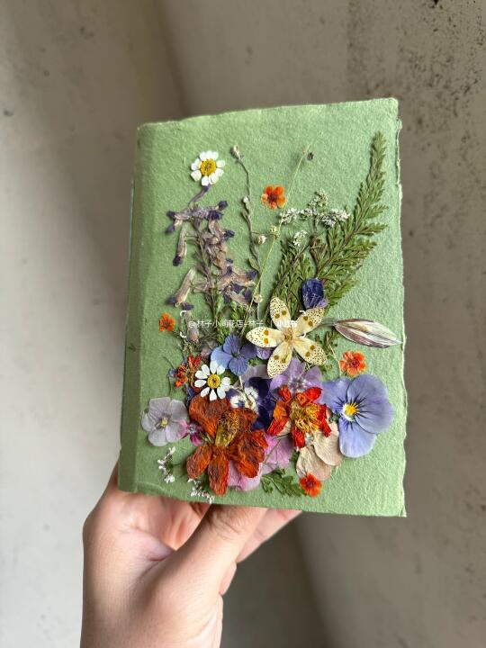 很多小伙伴都说花草书拿去野餐当道具 分分钟钟都出片, 就是往草地随手一放, 拍照也很好看, 不仅封面有花花,里面二十页都有植物标本(见图片13和图片14) 每一本都是独立来设计,也可以根据小伙伴的色系要求来设计~