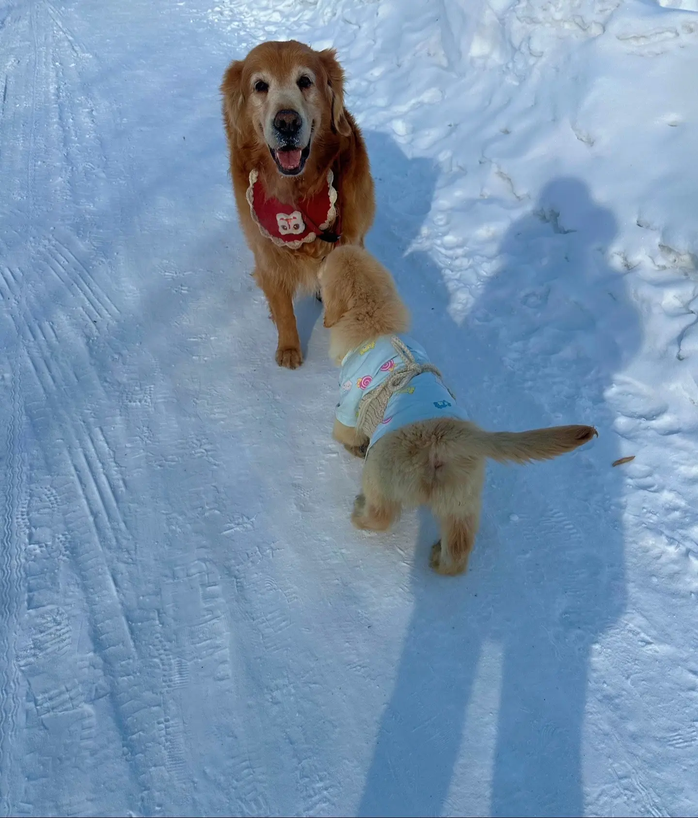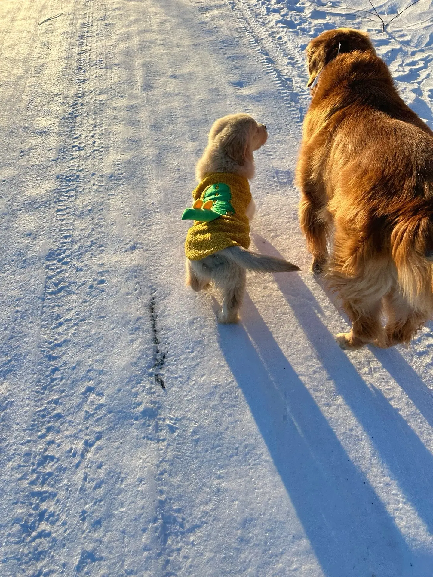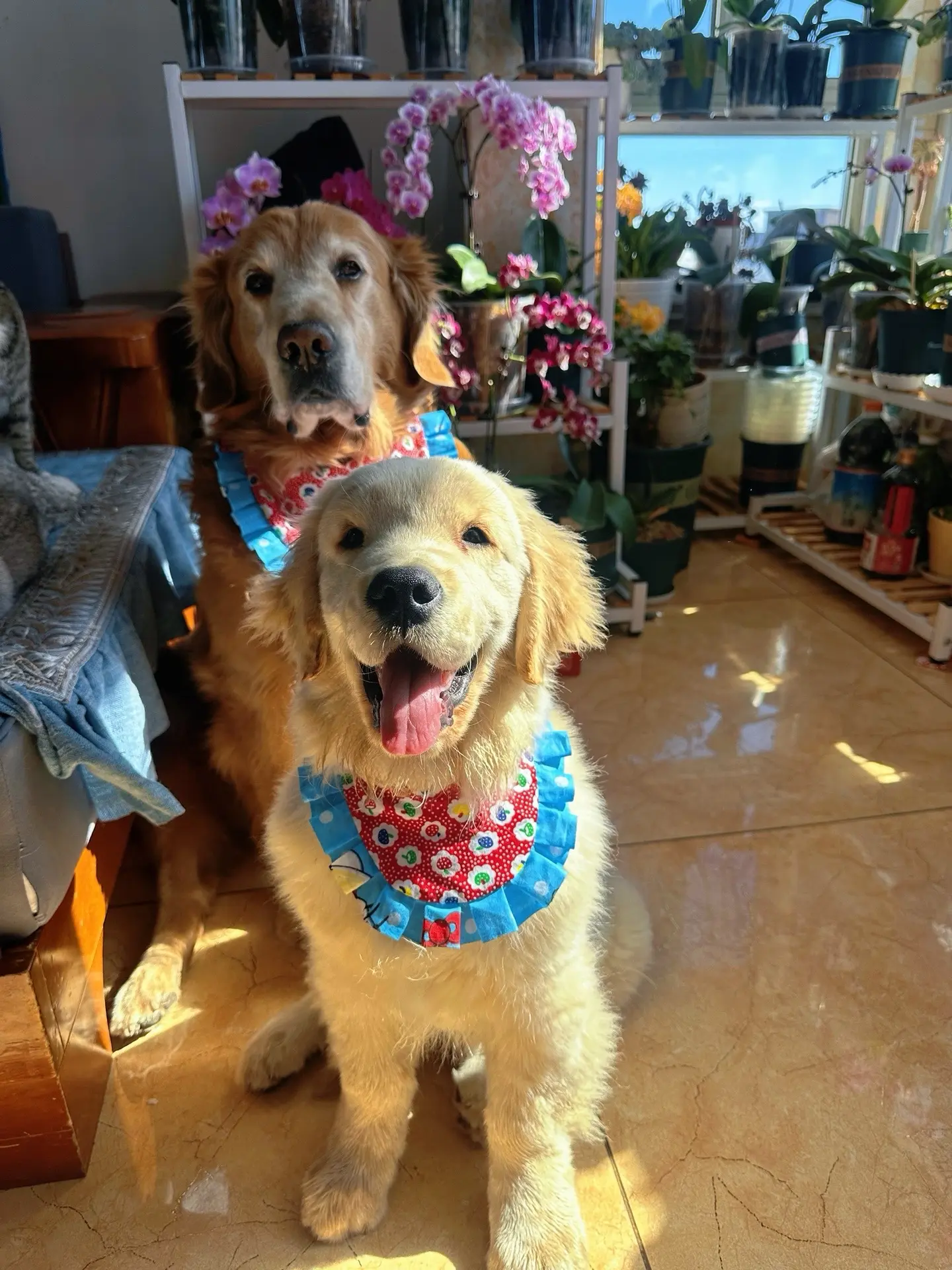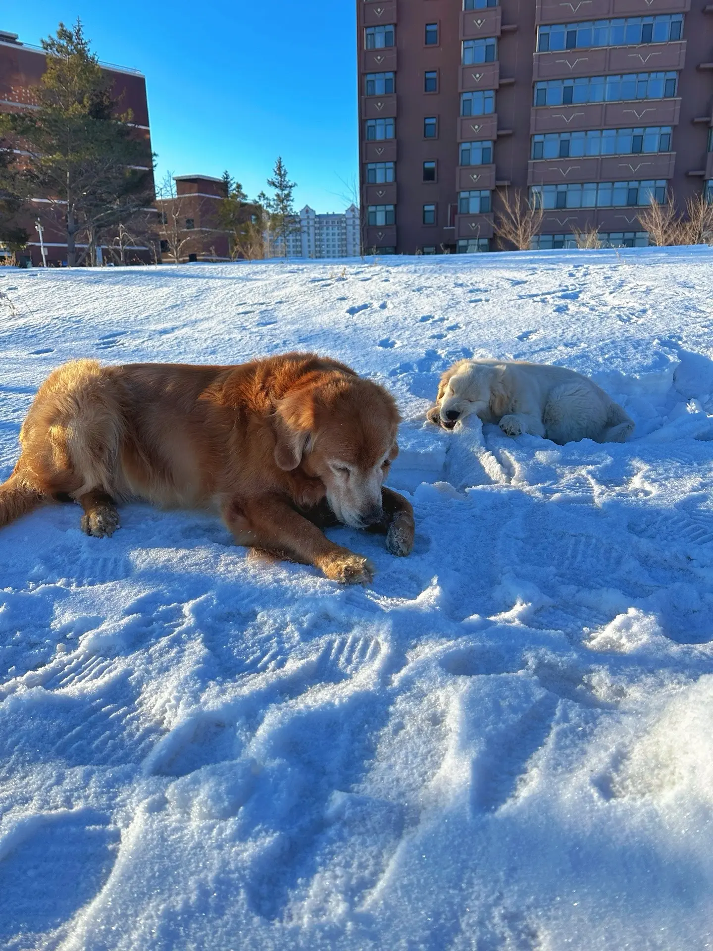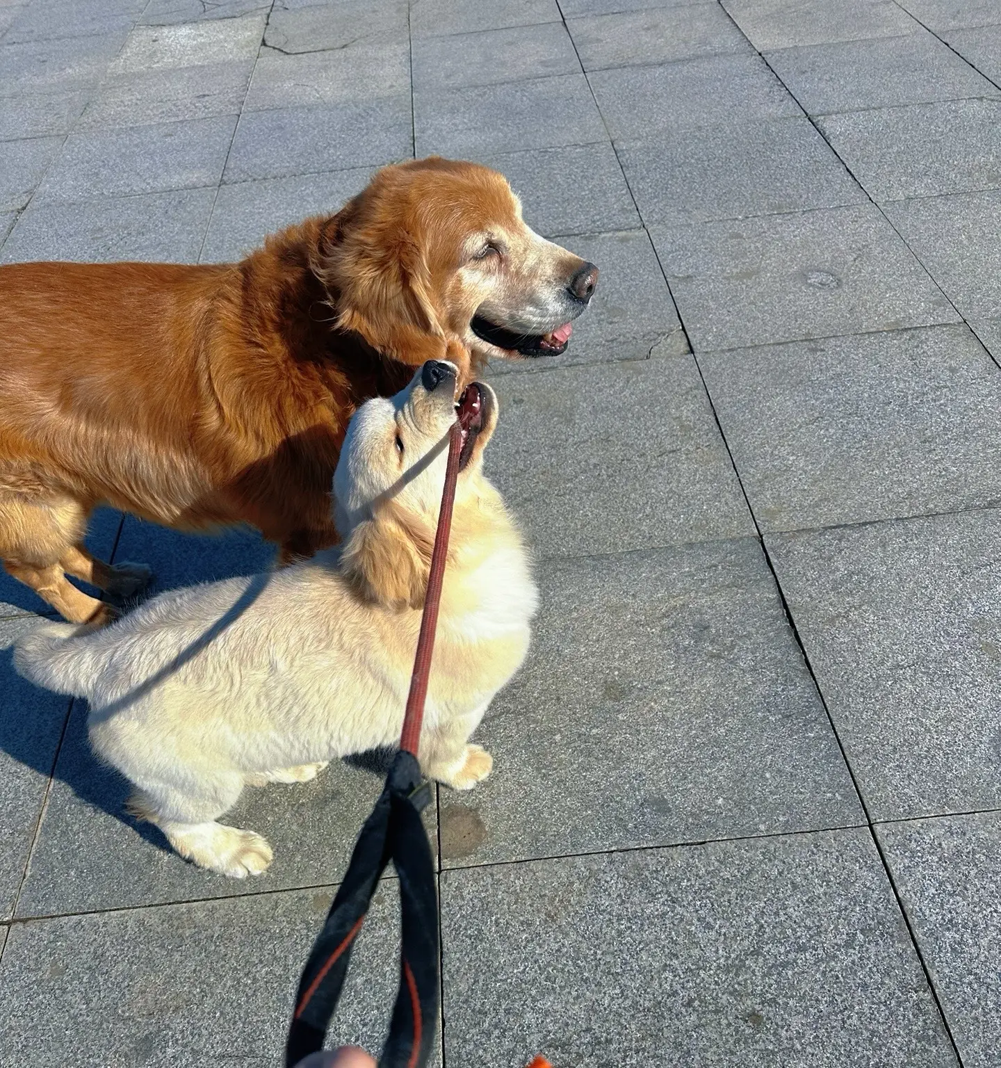 金毛 小鸡毛 家宝才不是来接大包班的,它是来陪伴大包的!自打大包的老伙伴马达走后,它就变的很沉默,我知道那么聪明的它肯定会知道了自己的结局,它变的不爱动,不爱玩,在妹妹上学的时候它总是孤零零的趴在角落。谁叫它,它都不爱搭理,家里有很多猫但是都不是从小陪它的马达,我想它需要一个同类的伙伴,家宝可来了之后,我看见家宝陪它趴在一起睡觉,带它们遛弯时大包也有了打闹的伙伴,希望我的大包可以变的很快乐这个世界不能没有小狗