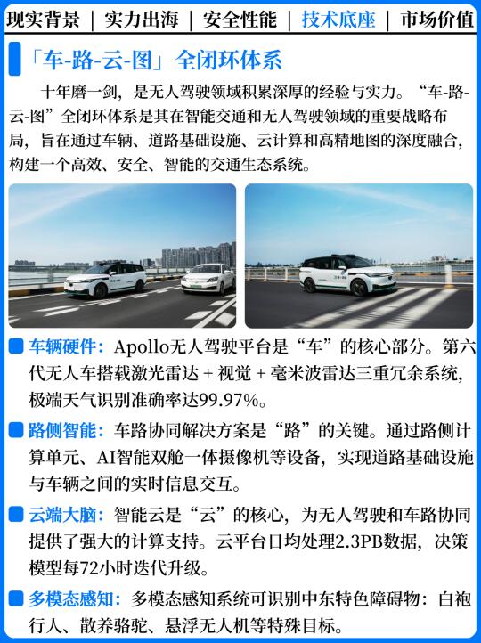 [点赞R] 此次中东布局不仅体现其“车路云图”一体化方案对复杂城市路况的强适应性,更通过多重冗余设计、全天候环境感知与远程监控系统破解极端气候与陌生场景挑战,为全球城市智慧出行提供可复用的中国范式。
