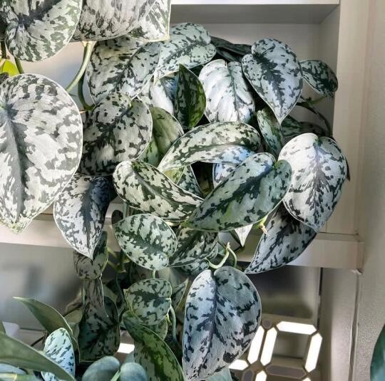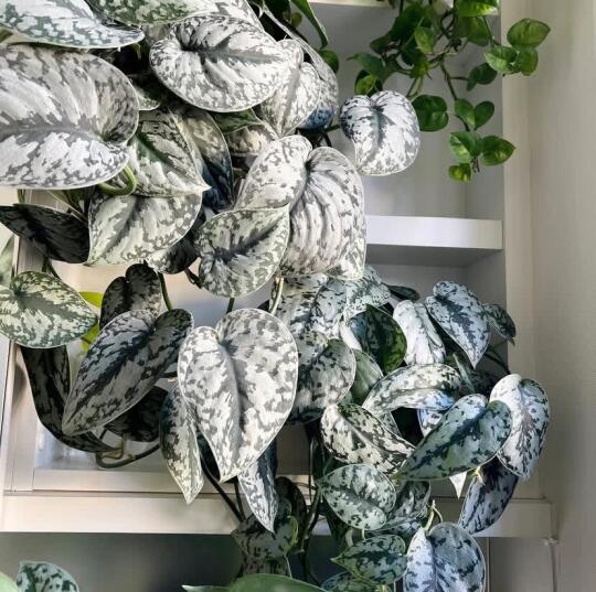 绿箩家族的高颜值 — 银斑葛 Scindapsus pictus 'Argyraeus' 它的叶片厚实,有层薄薄的绒面, 叶面还有灰银色的斑点点缀, 没有人能抗拒它的美貌吧!! 不管把它放在哪个位置都是很棒的装饰~ ▫️习性:喜半阴通风环境,避免阳光直晒,耐荫性强,温度在5°以上能安全过冬。 . ▫️养护:薄肥勤施,钾肥,喜氮肥,通用营养液可,叶面需常喷水防焦边,适合室内养护,可水培,土培。 · ▫️土壤:保持疏松,需要排水性良好的 · ▫️懒人养护指数:💚💚💚💚