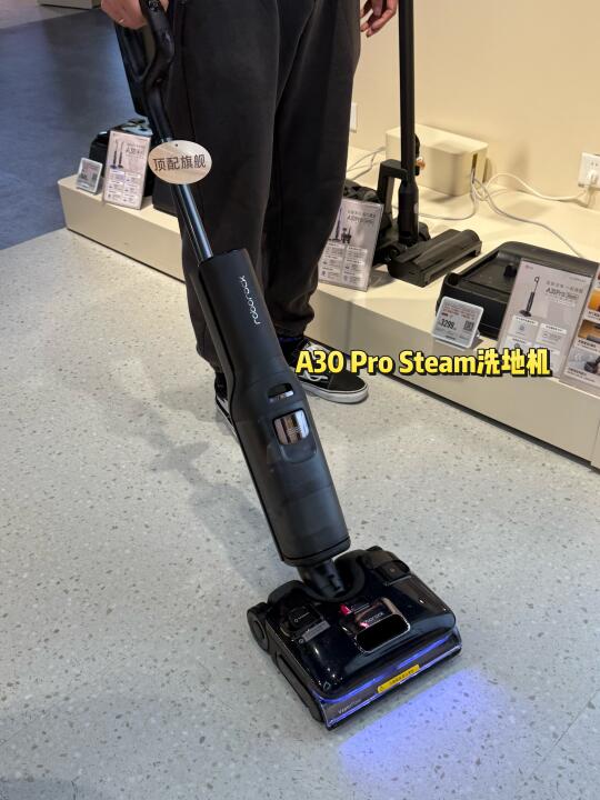 A30 Pro Steam洗地机,当天有好多阿姨们都在试用,她们对蒸汽除菌相当感兴趣,150℃蒸汽加压直喷,可以杀🦠防螨,86度高温活水洗地,对养宠家庭的日常杀菌很友好,操作也方便~