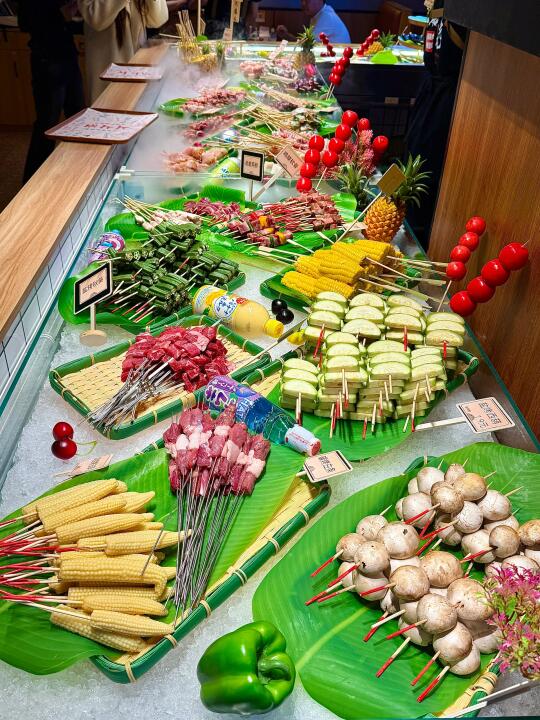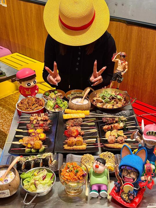 济南新开的!!动!漫!风!烧🍢烤 🍢是自己选的 种类还挺多的!烤🍍跟肥牛🍇都吼吼吃