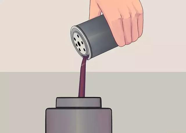 5你也可以在安装之前在机油滤清器里放一点机油。这将会使你的车重新获得适当油压的时间缩短。如果你的机油滤清器是垂直安装,也许能够把油基本装满,如果安装有一个角度,那么会有一小点油会在机油滤清器旋紧之前泄露,但不会太多的。