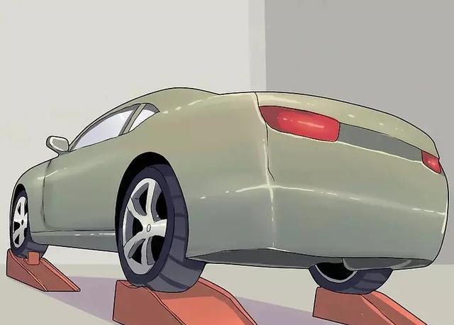 如果你想利用斜坡来抬高你的汽车,确保您的后轮用木块撑住。让某个人在现场指导你开上斜坡,确保别开过头,人刚好能钻入车下即可。