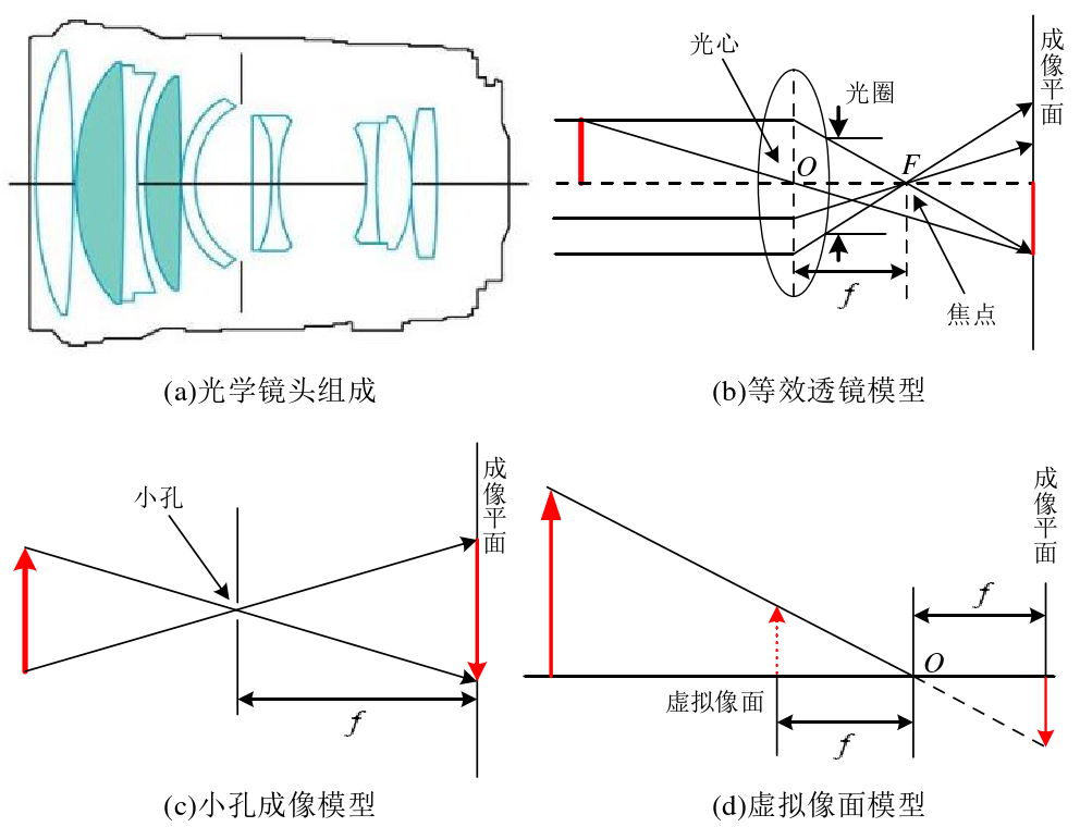 · 原理:在一个暗箱的前壁开一个小孔,后壁放置一个感光介质(如胶片或图像传感器)。来自物体表面的光线会沿着直线穿过这个小孔,在后壁上形成一个倒立的实像。