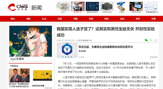 信息来源:中华网2024-7-29我国实现人造子宫了?这其实和男性生娃无关 开创性实验成功