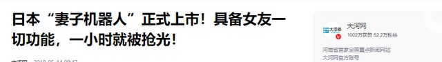 信息来源:大河网2019-5-14日本“妻子机器人”正式上市!具备女友一切功能,一小时就被抢光!