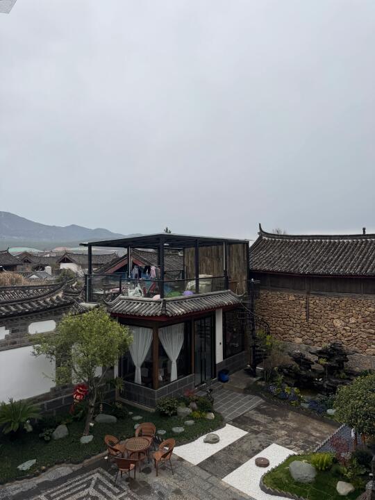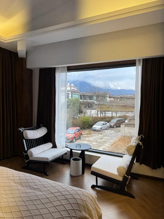 ✔ 双面景观——一面直面玉龙雪山,另一面被青翠群山环抱,仿佛睡在风景画里🖼️