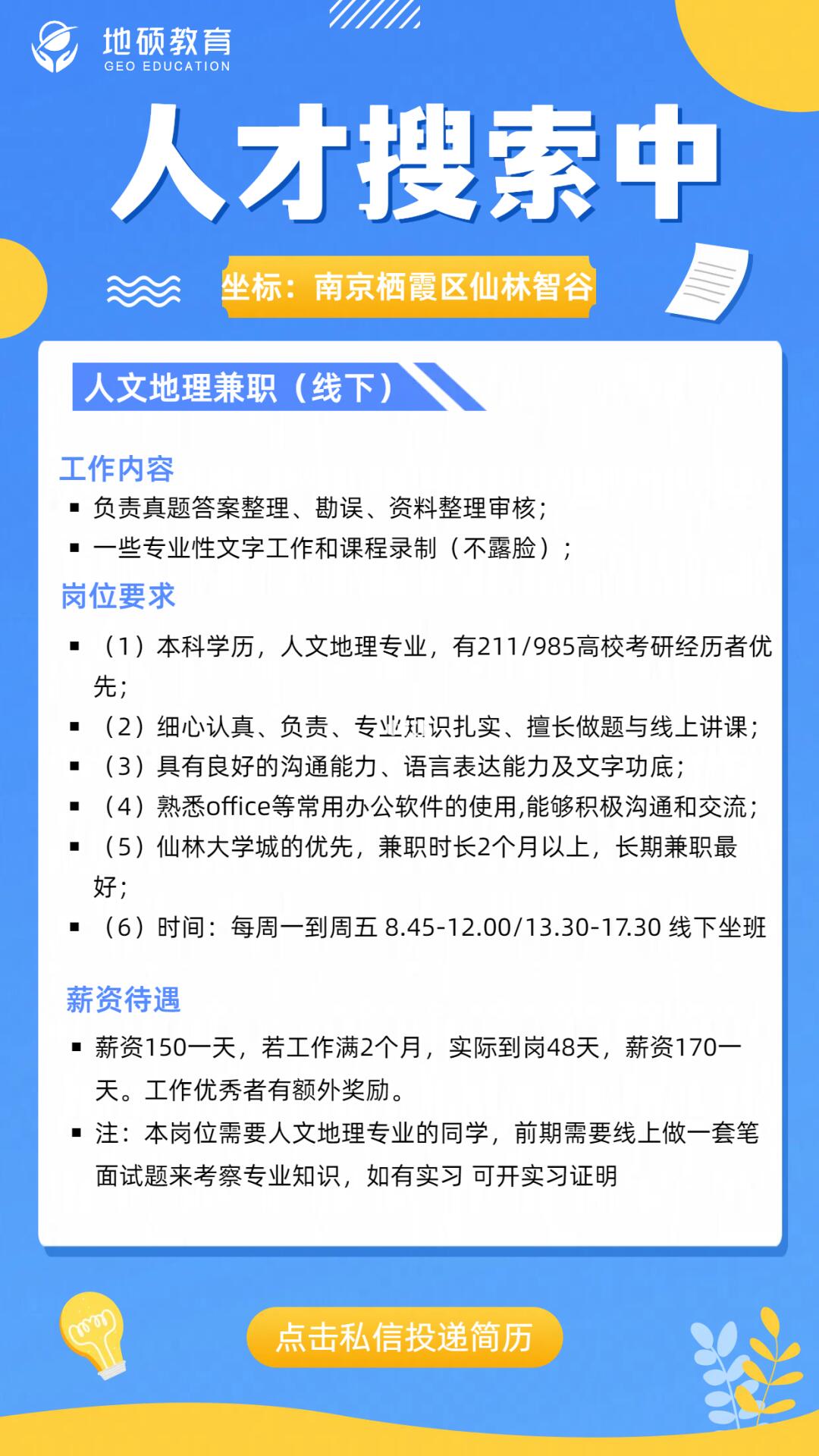 以上如果你有想法,欢迎春季招聘 地硕 运营 招聘 地理学考研