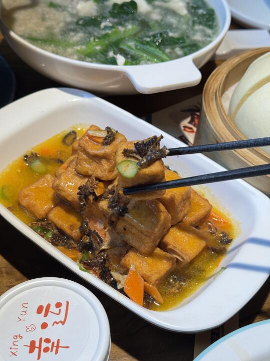 这道菜简直是鲜味的代名词!羊肚菌的香气浓郁,搭配嫩滑的豆腐,再淋上鲜美的鸡汁,每一口都是满满的幸福感!😋