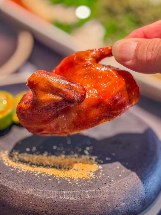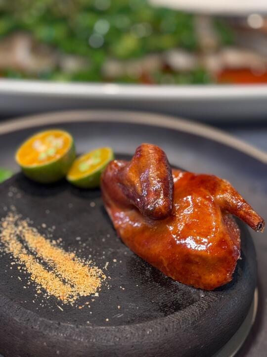 玻璃妙龄乳鸽一上桌,就让人眼前一亮。外皮烤至金黄酥脆,咬下去“嘎吱”作响,内里的鸽肉却鲜嫩多汁,香气四溢,每一口都充满了浓郁的肉香,不愧是店里的招牌之一。
