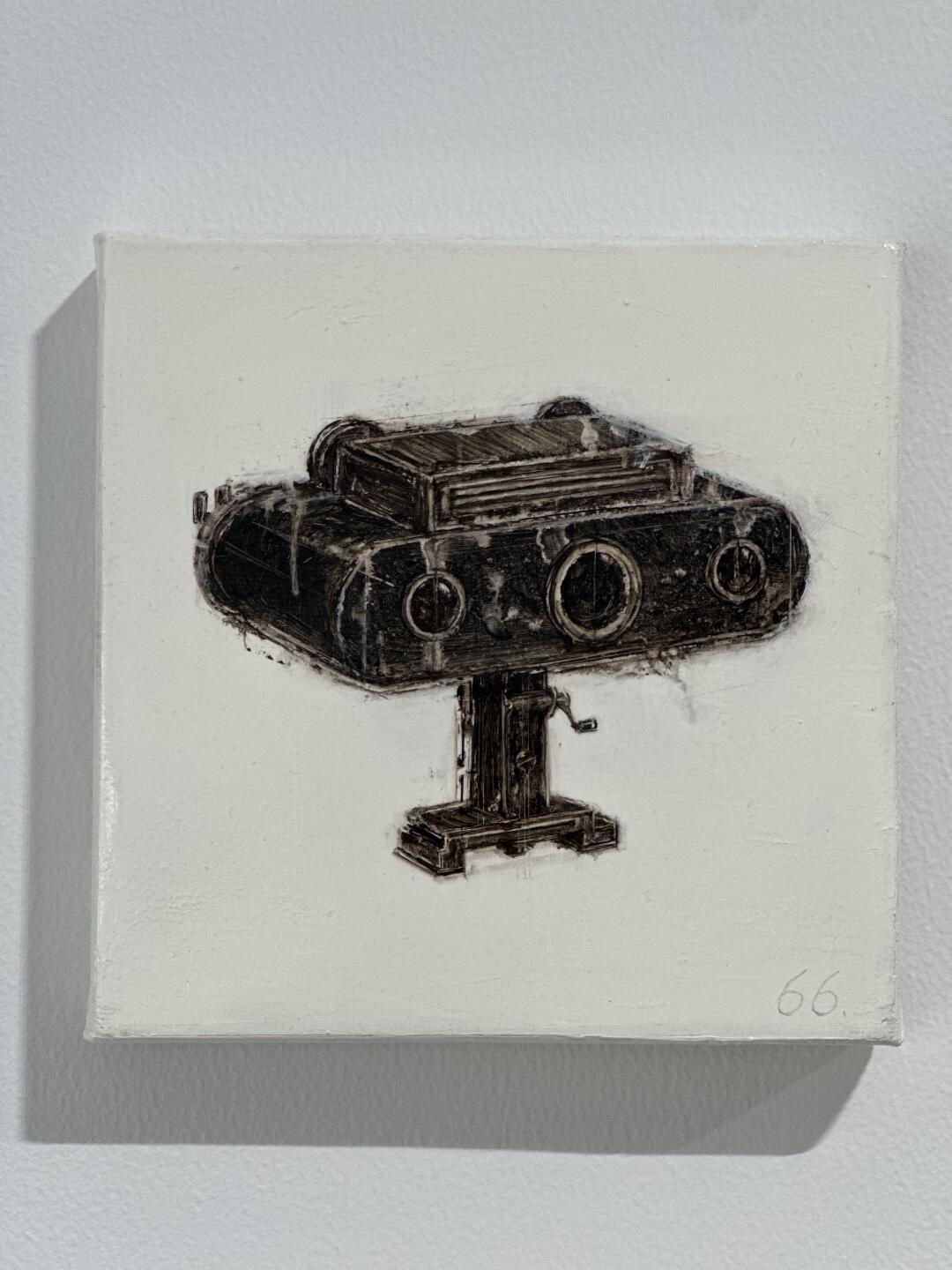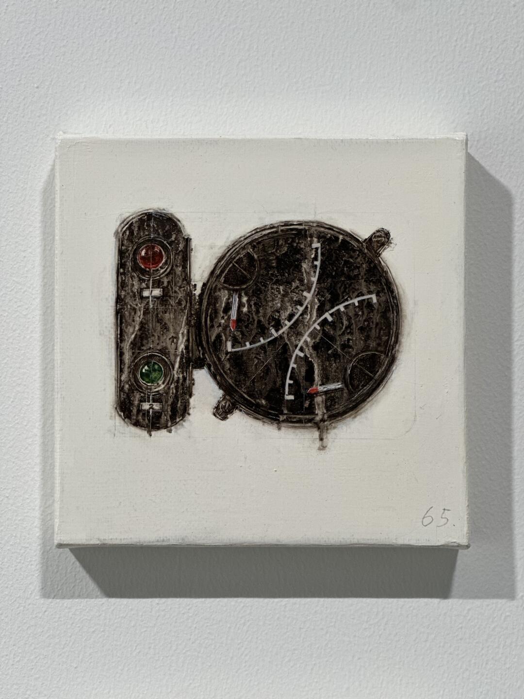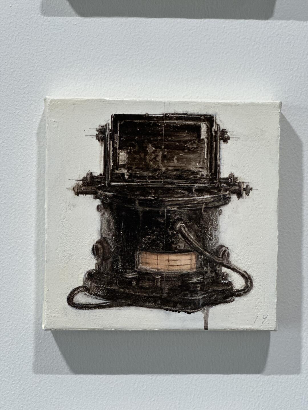 在上海愚社看到林清的一组巴掌大的小画,工业感很强的仪表、照相机等老物件,布面丙烯混合油彩,有点萌,非常有趣。