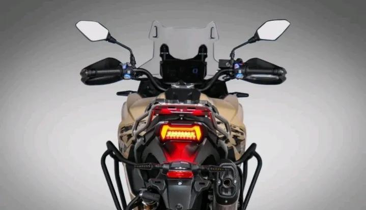 最引人注目的莫过于它全新的沙漠灰涂装。不同于DS525的沉稳内敛,DS625X的沙漠灰更具冒险气息,仿佛是从戈壁滩上呼啸而来,带着一股狂野不羁的气质。金色的前减震和轮毂,则为这狂野增添了一抹精致,如同沙漠中的点点金光,耀眼夺目。这种大胆的配色方案,无疑抓住了年轻一代摩旅爱好者的审美,也彰显了无极品牌对个性化和时尚感的追求。