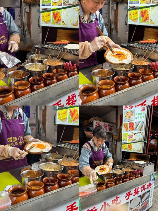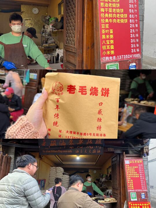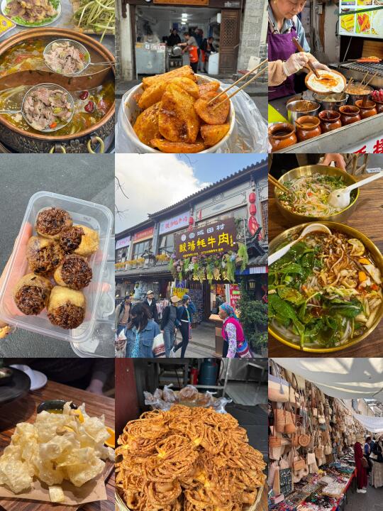 ✅烤饵块是在古城某个路口看见的,也是很多人,排队半小时吃上的本地特色小吃,跟妹妹都觉得很不错,满满的料尊嘟太满足啦😭