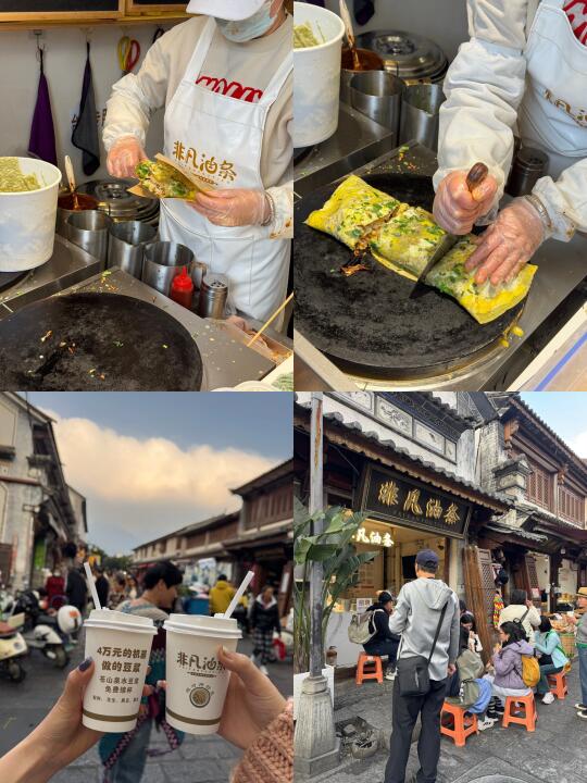 ✅非凡油条是路过见很多很多人,跟风买的好吃😋豆浆4去有点小贵,但确实好喝,鸡蛋灌饼也不错~