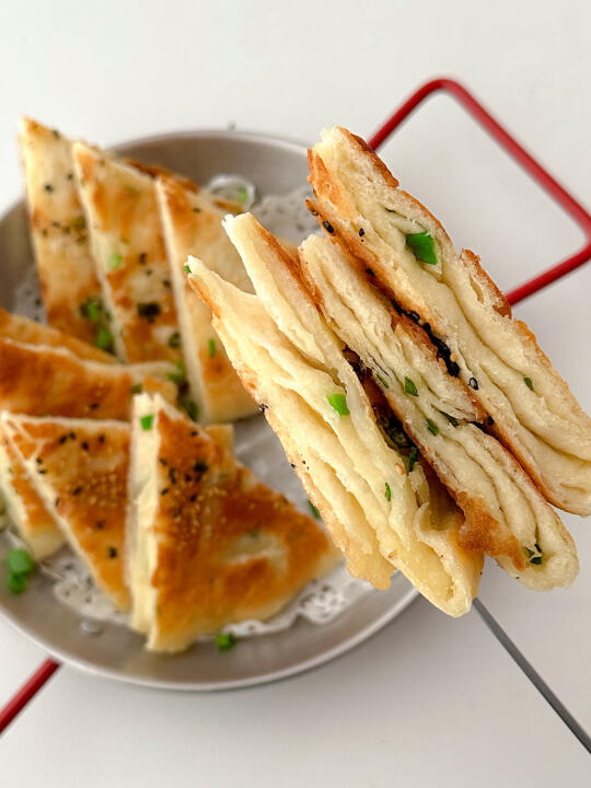 刚出炉的葱香发面千层饼,咬下去还有焦脆边边,层层叠叠软fufu的口感太绝了!葱香直接封神!当早餐、下午茶都超合适,碳水脑袋真的会疯狂心动💓