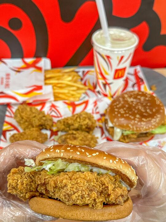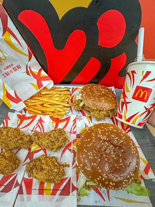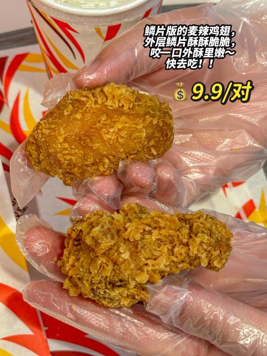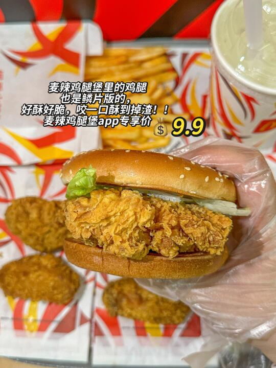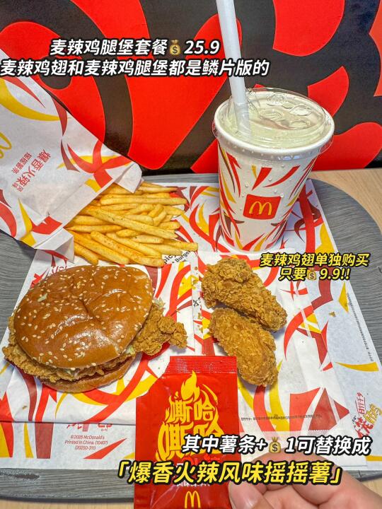 手工裹粉的鳞片版麦辣来了~ 真的给辣翅和鸡腿堡注入了灵魂🥹🥹 酥酥脆脆,咬一口酥脆到掉渣!! 还有嘶哈嘶哈爆香火辣风味摇摇薯条🍟 裹上肉香和鸡肉调味料,辣度刚好!! 价格好划算~ 快约上你的麦辣搭子冲!! ✅ 麦辣鸡翅💰9.9/对 ✅ 🍟 ✅app麦辣鸡腿堡也只要💰9.9 麦辣鸡腿汉堡套餐➕1r可将薯条换成「爆香火辣风味摇摇薯条」,里面的雪碧可以免费升级大杯噢!