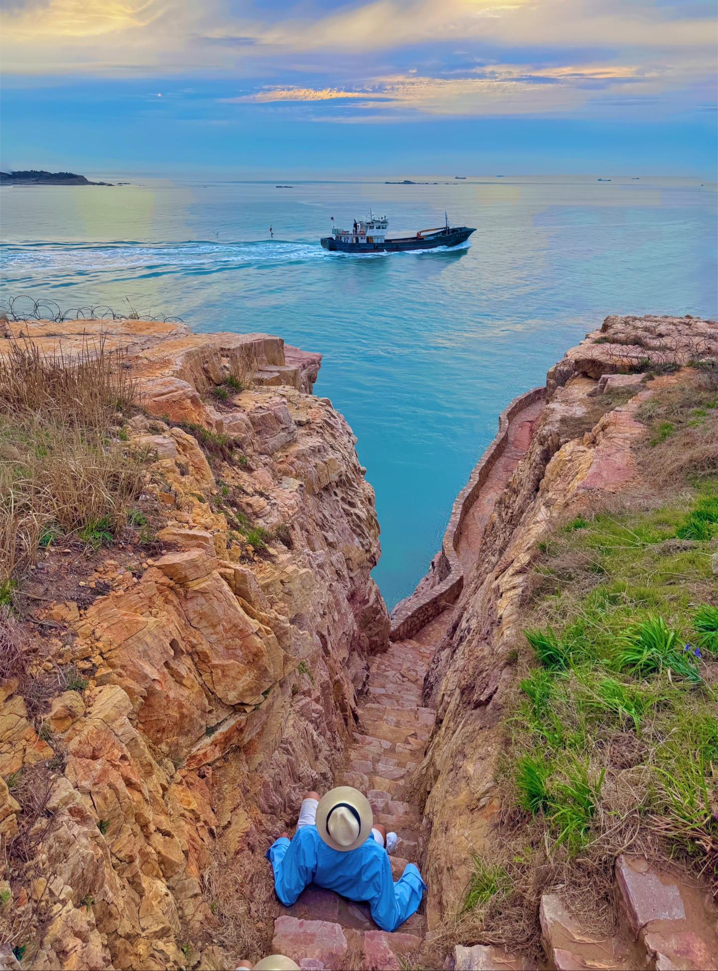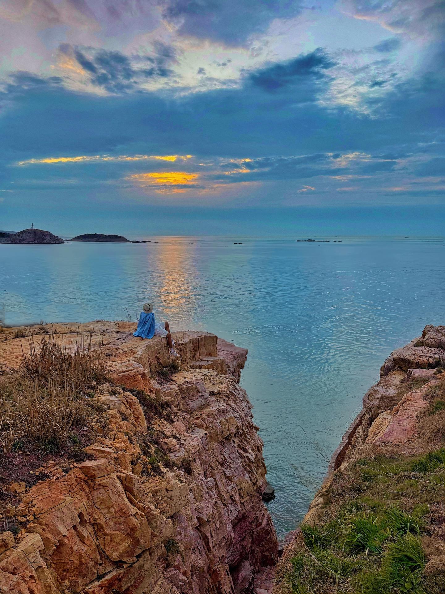 落日 悬崖 孤帆 好像电影🎬里的场景啊