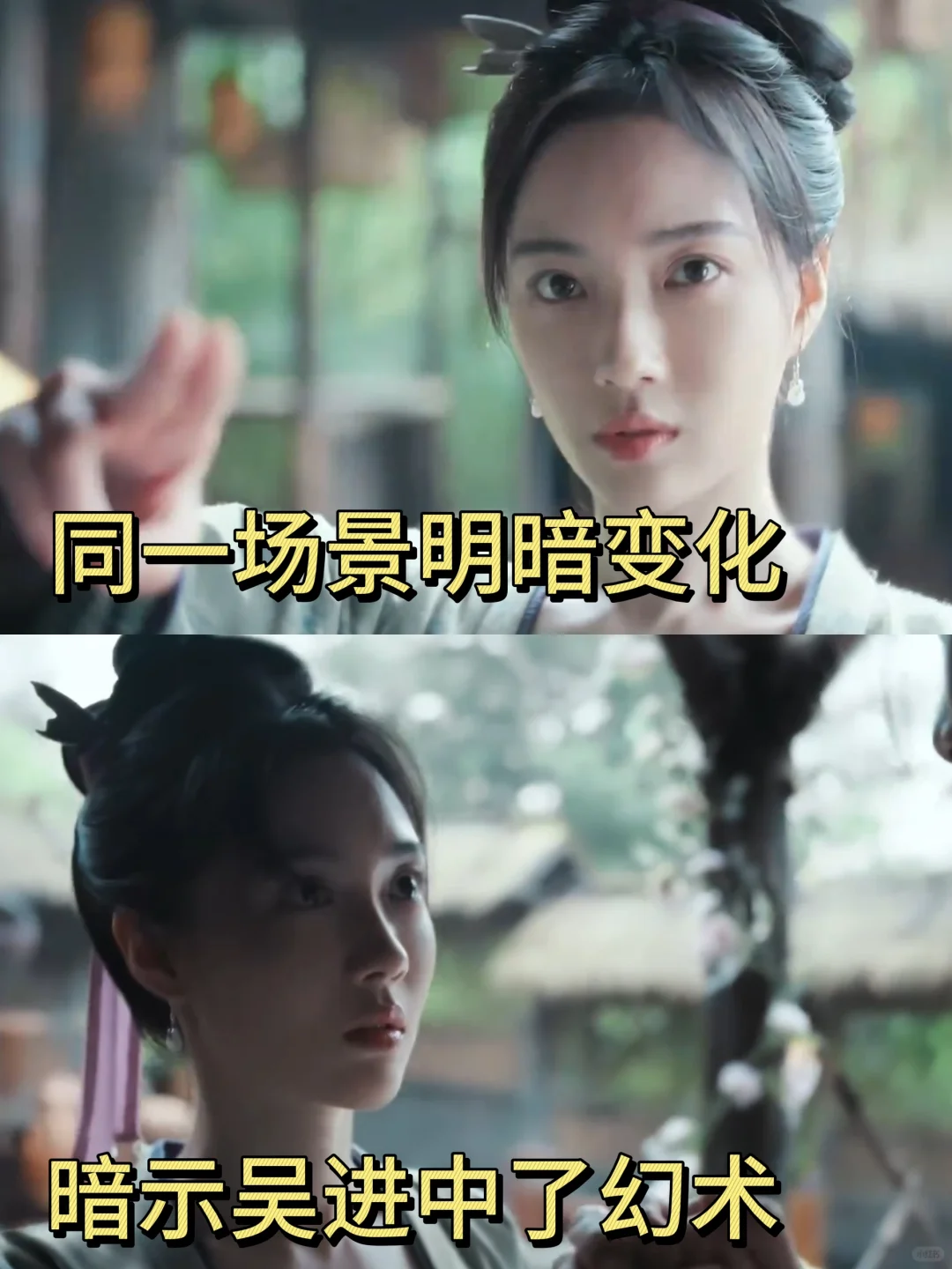 吴进中狐妖幻术时,通过他视角下的水瑶忽明忽暗的画面,表现吴进的虚幻。