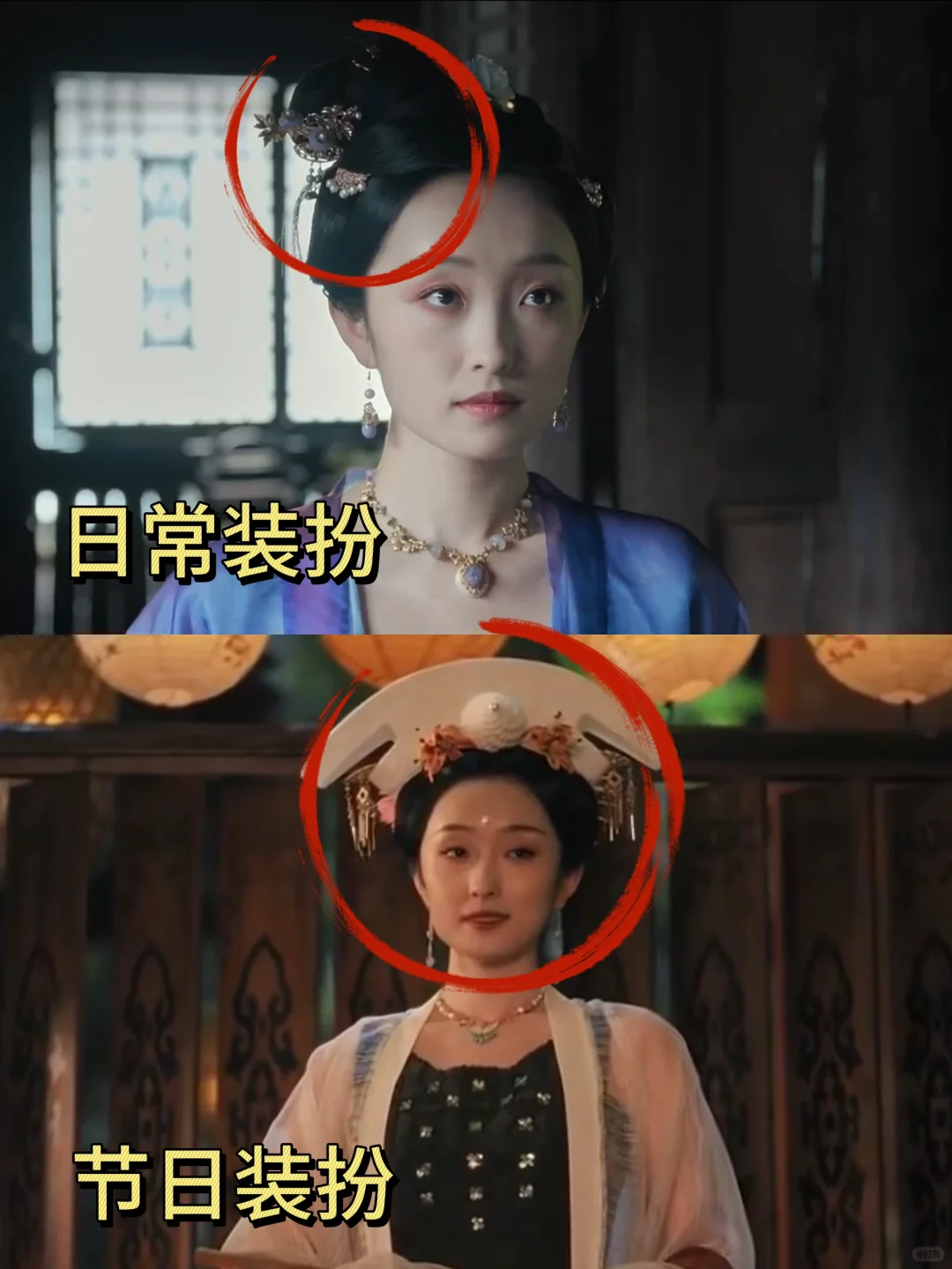 宋知茹在天穿节盛典的穿着和日常相差较大,也侧面意味着节日的重大。而且宋知茹的节日穿着还考究了宋代的等肩冠,好用心…