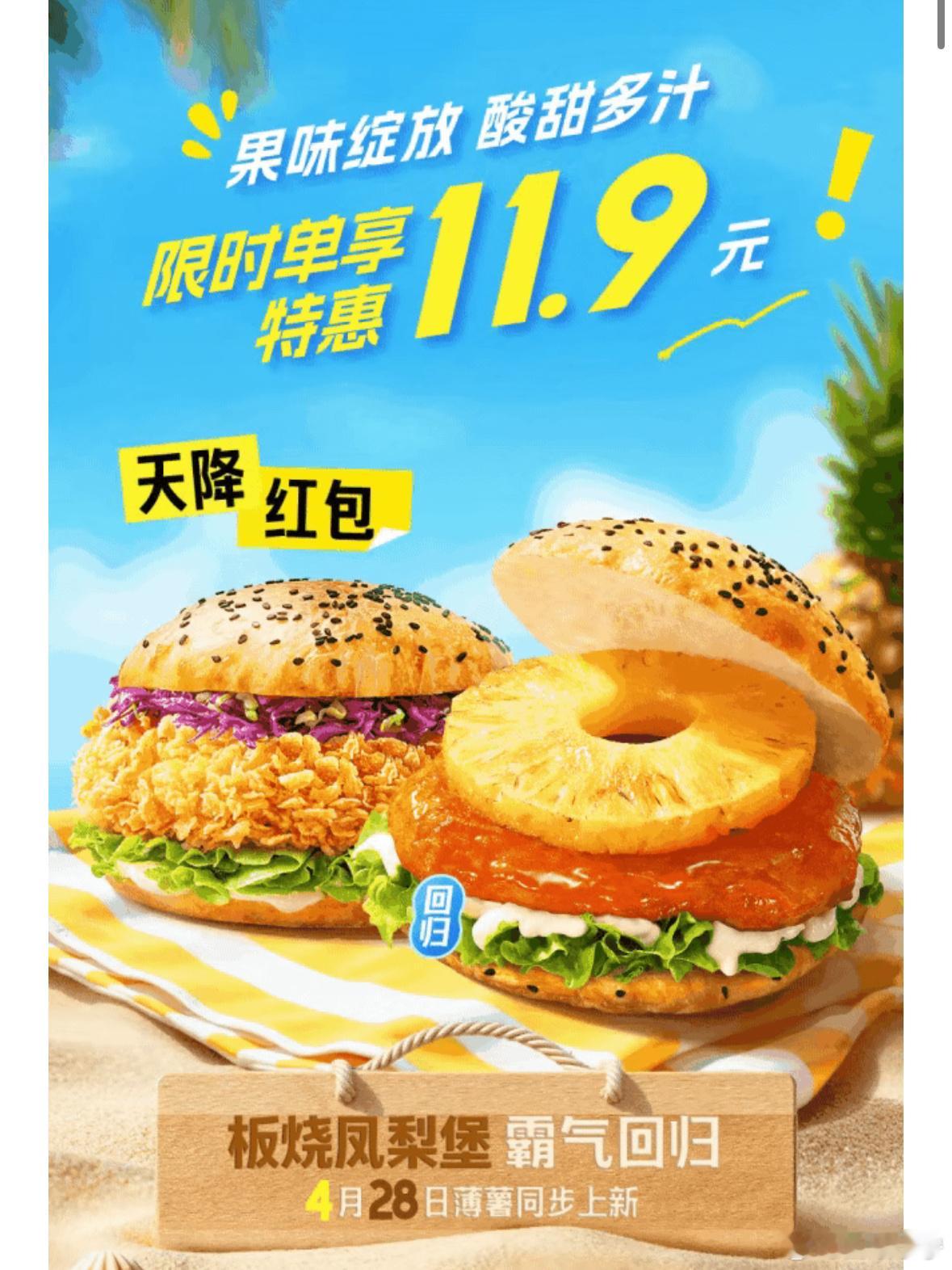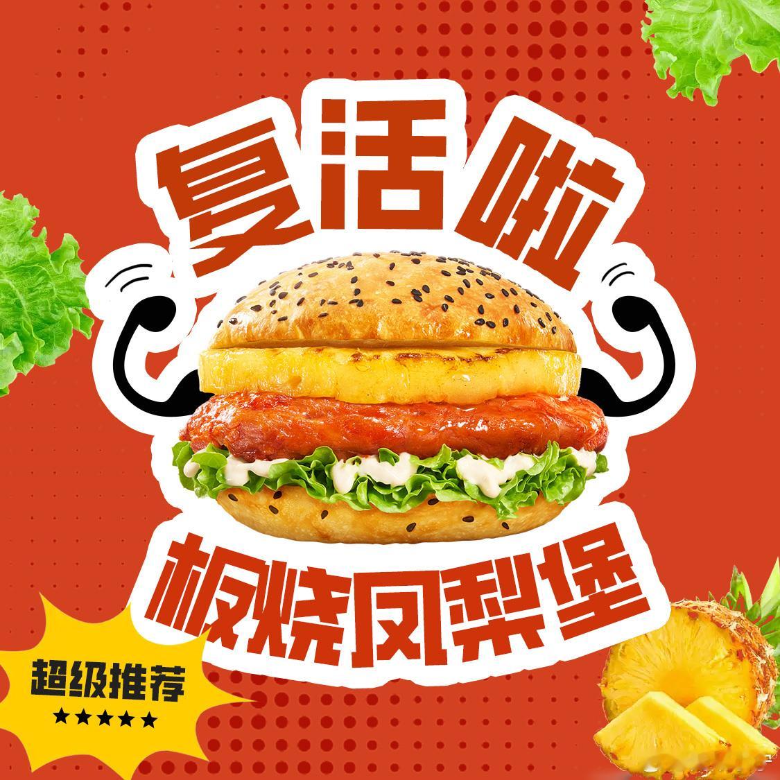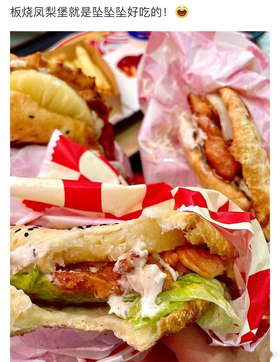 🍔看到大家在各个平台发声求回归!没想到喜爱它的人辣么多!终于❗️小程序里重新上架的板烧凤梨堡,激动的眼泪从嘴角流下来😋。