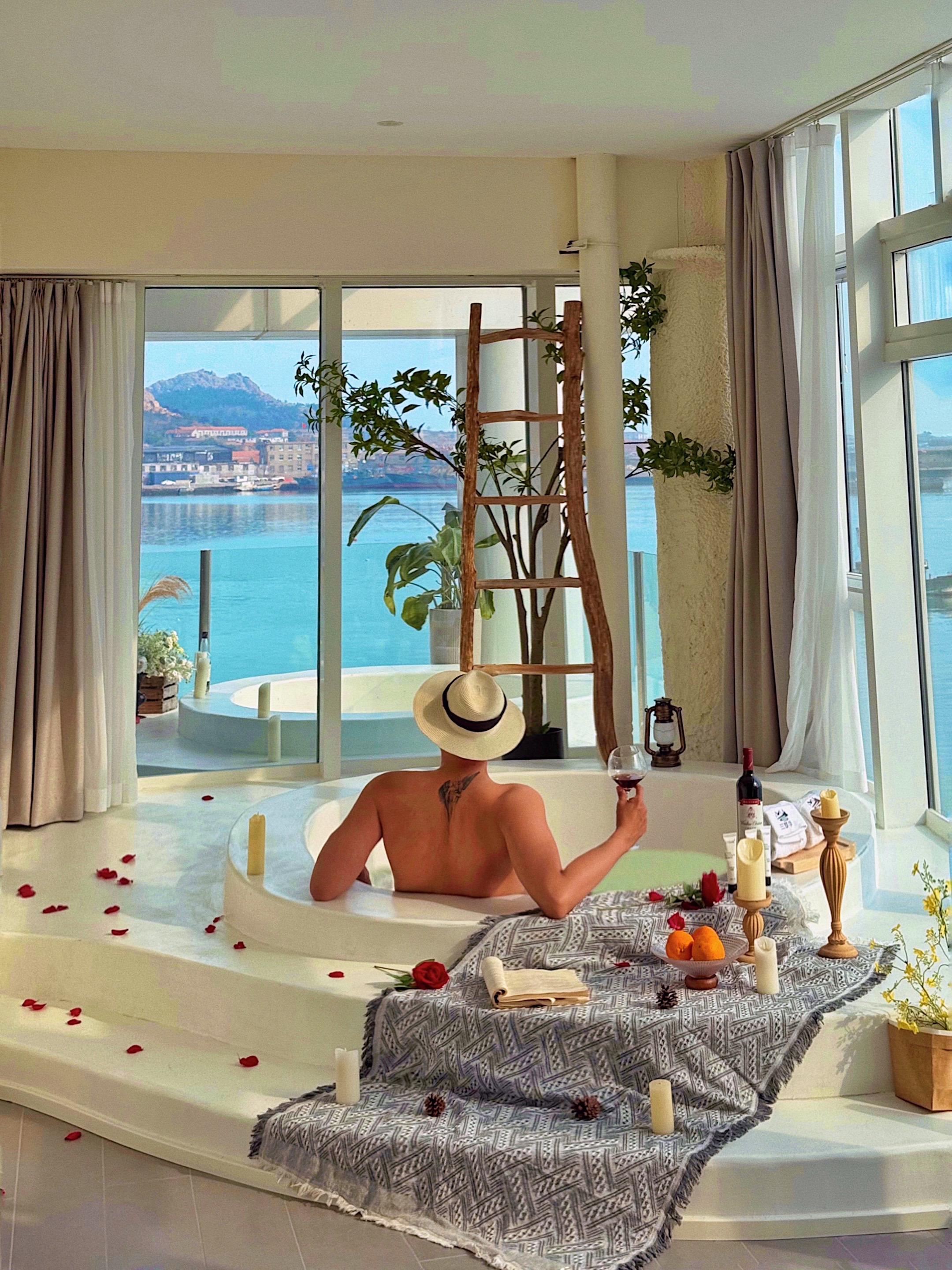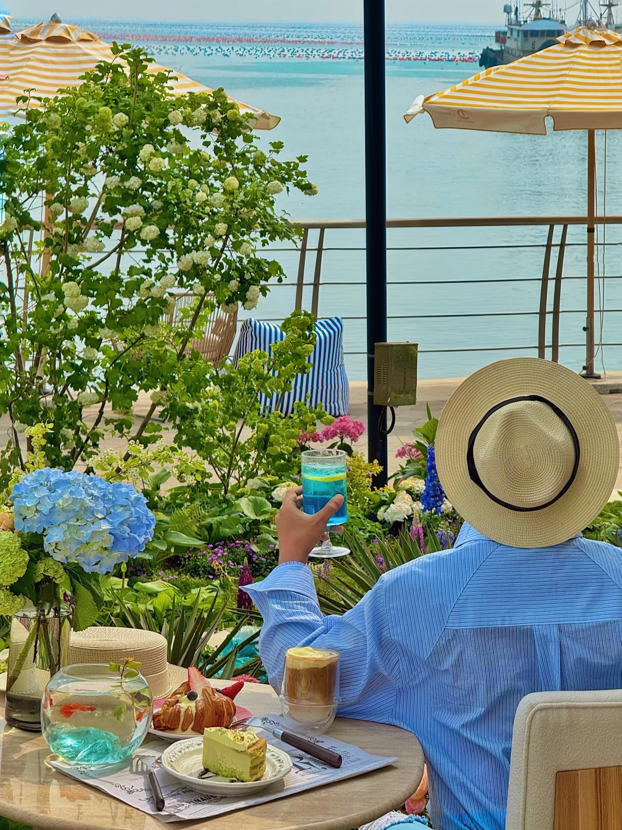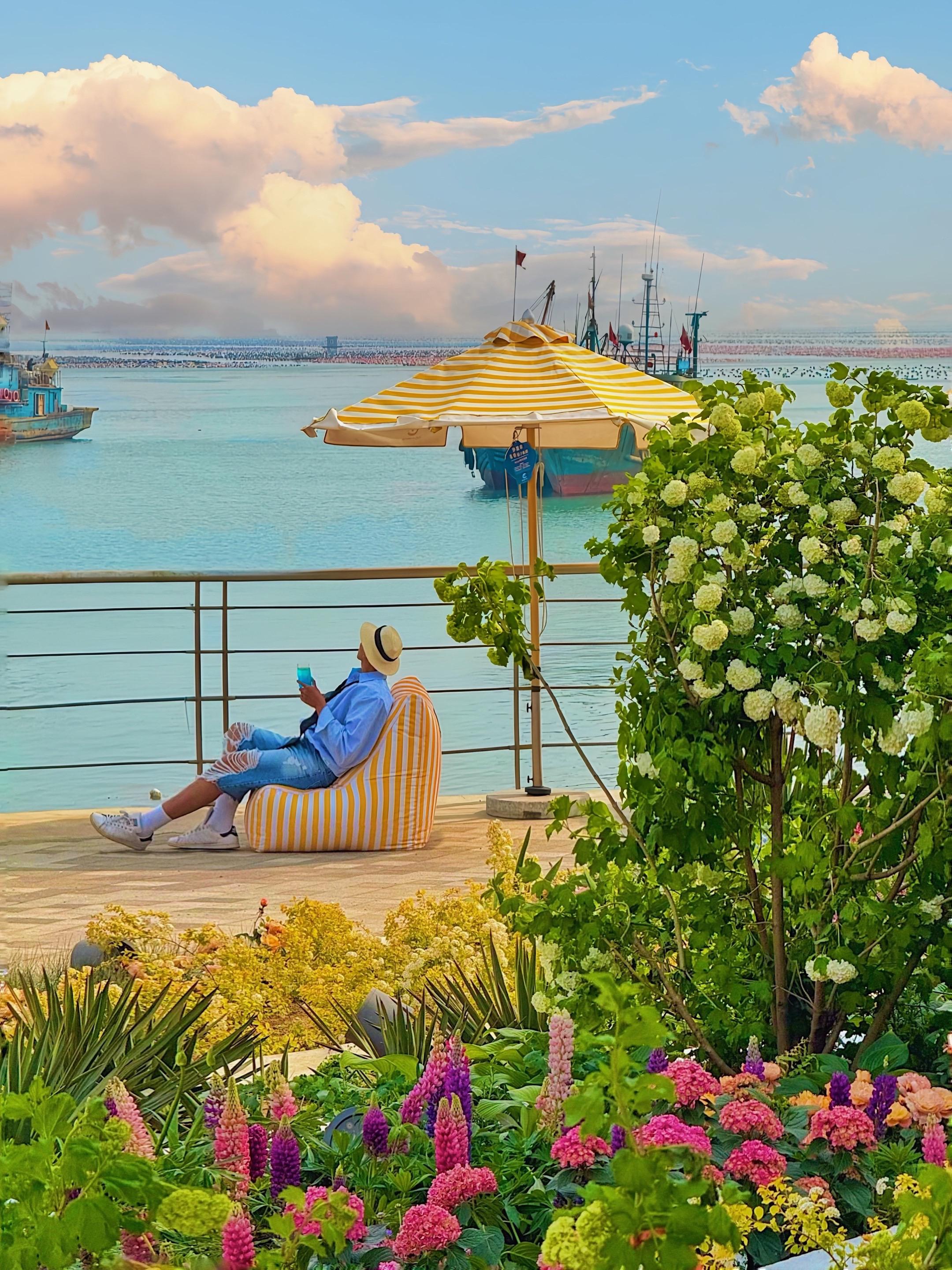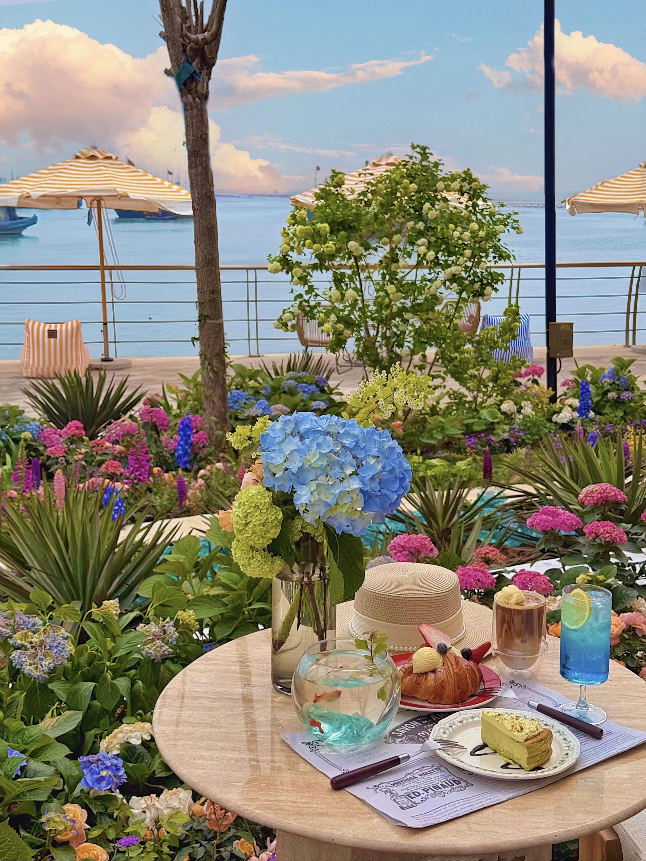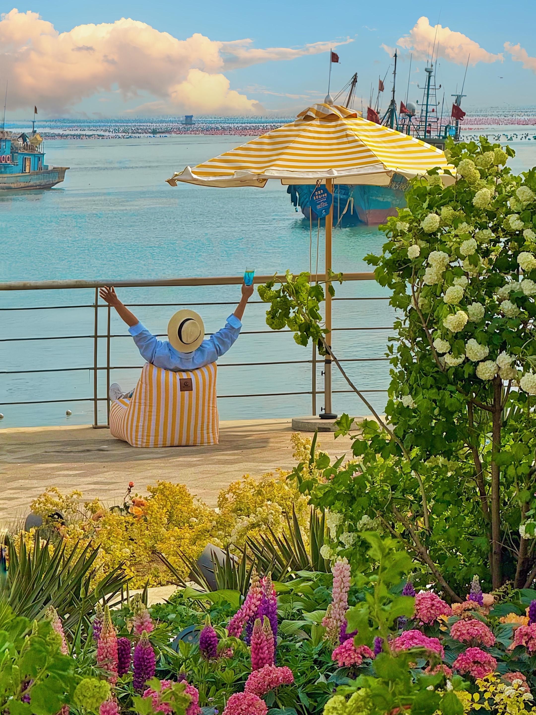 在威海‼️海边的梦幻莫奈花园☕🌸🫧。麻烦来一杯咖啡☕️