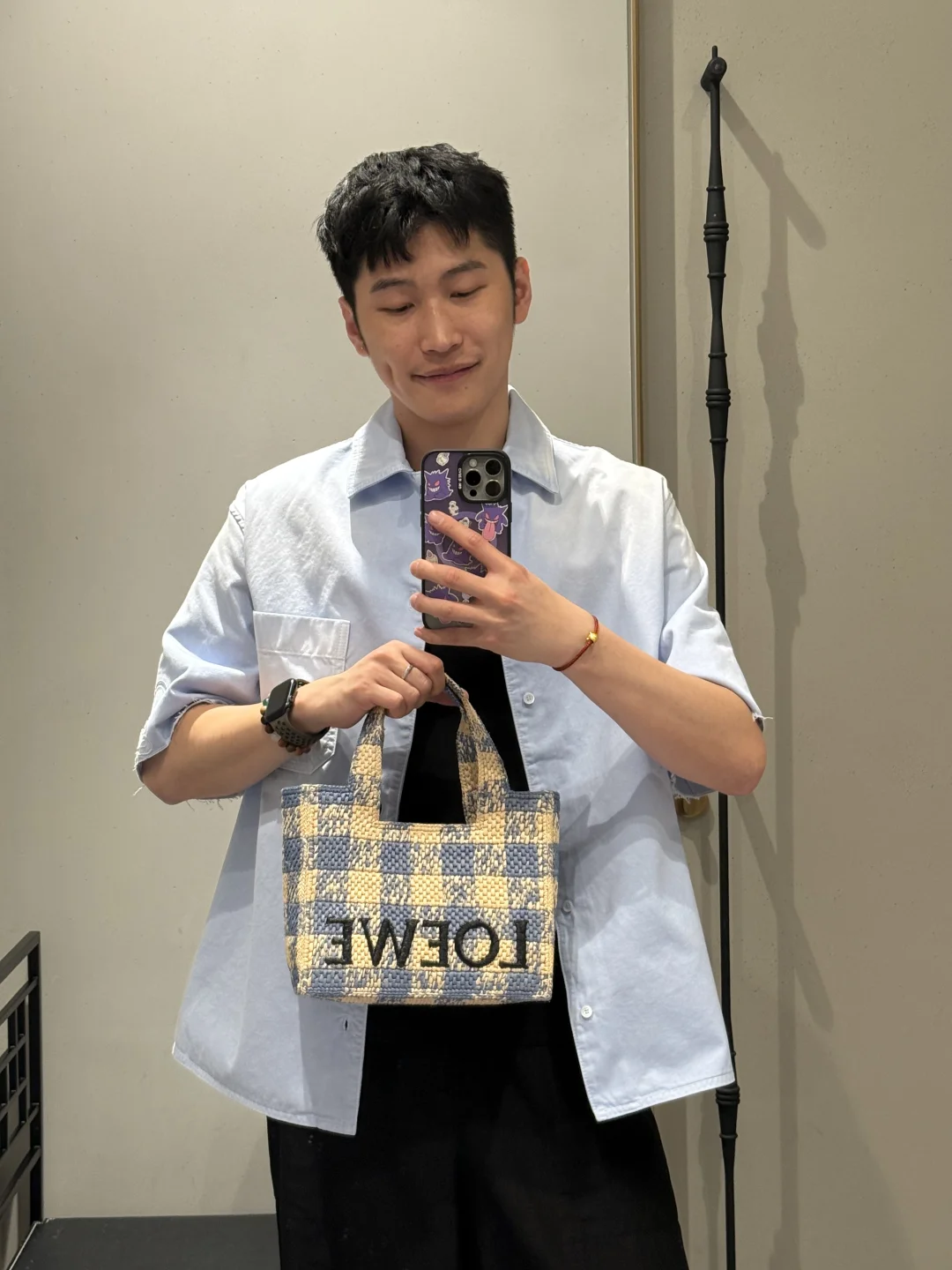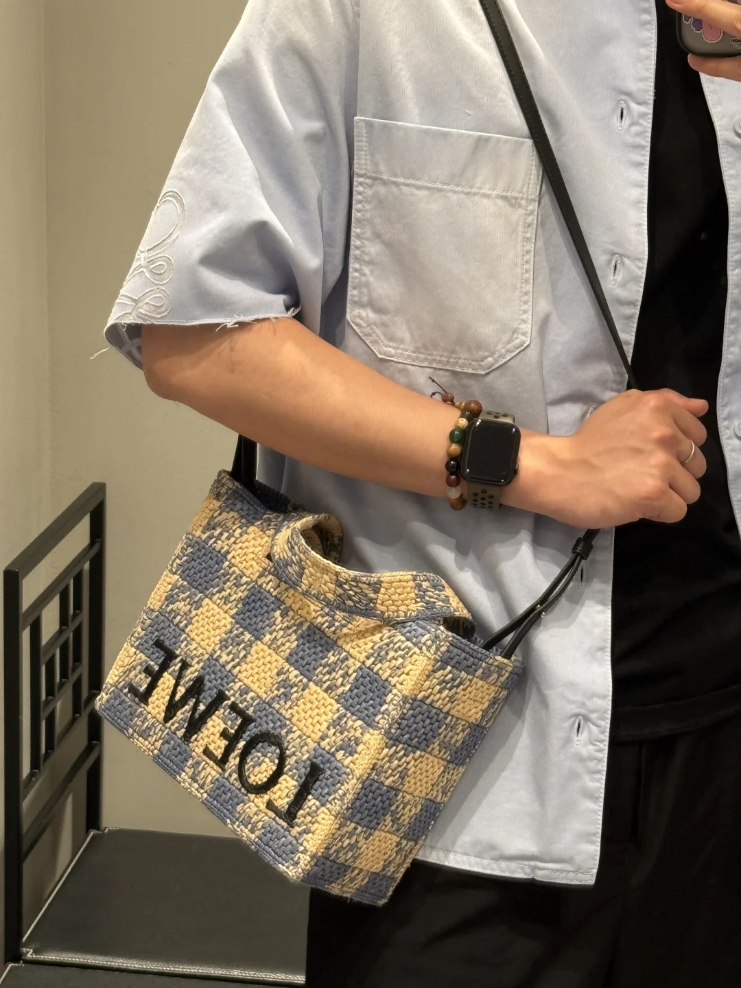 LOEWE罗意威 清新夏日蓝格子草编包🧺