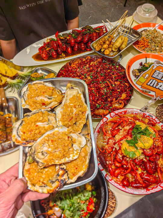 刚到饭点就开始排上队了!生意非常好🔥 尝了下店里的招牌🦞,肉质非常鲜嫩,口感甜润,嘎嘎好吃!!! 除此之外,烧烤也是一绝,有被惊喜到! 约上三两好友,来这么一顿不要太幸福了