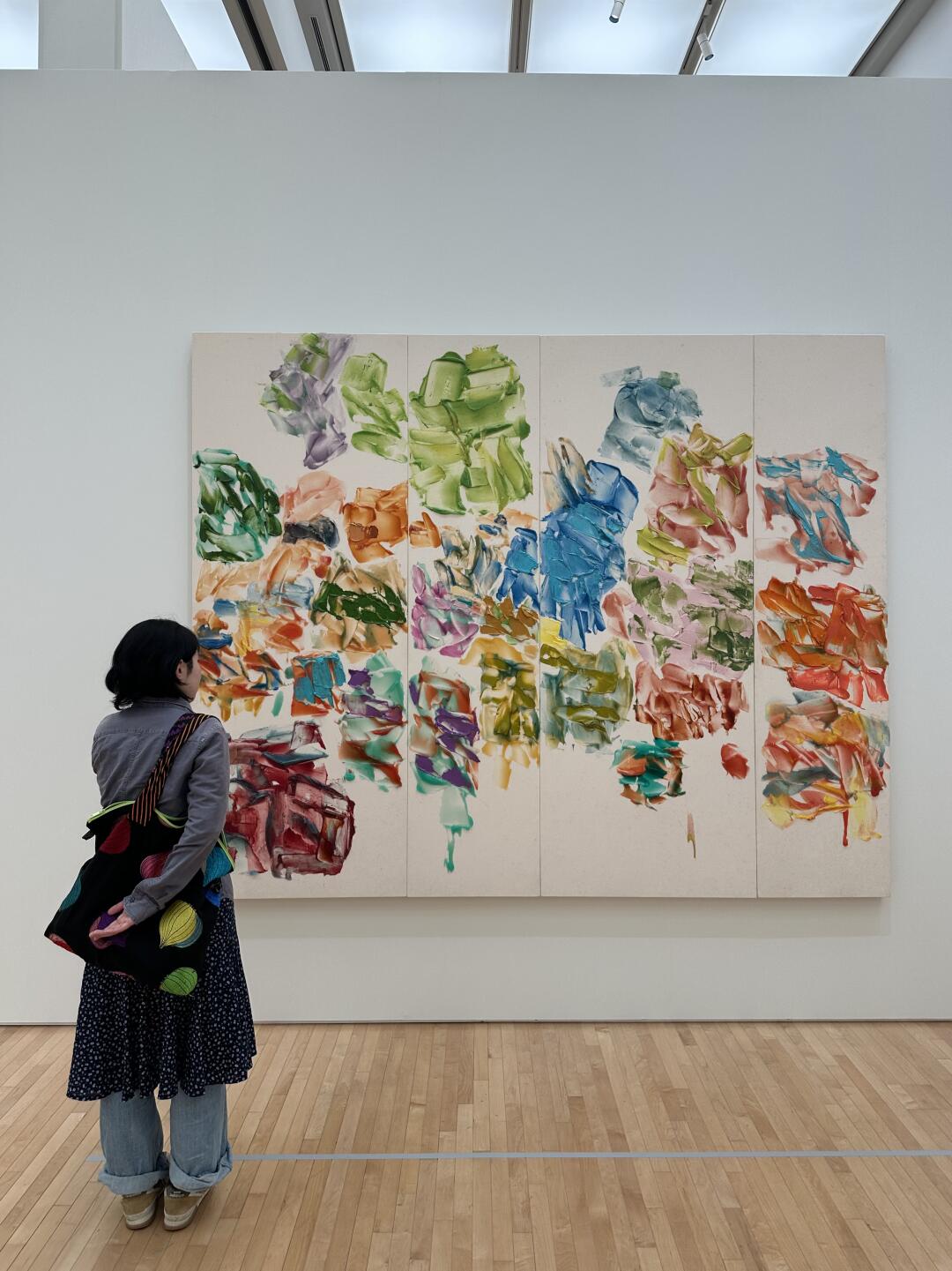 早晨和朋友说,我看架上绘画多少有点把握,对装置雕塑完全不摸门,而且始终不愿接受廉价材料。话音未落,就在东京都现代美术馆看了冈崎亁二郎(b.1955)的大展。首个展厅就是瓦楞纸制作的三维小雕塑,而我居然看进去了。微妙的色彩和空间变幻,我从不同角度拍了不少照片(图3-11,同一件作品三个角度三张图感受下)。 然后冈崎亁二郎作为画家和雕塑家的其他作品,对我来说就是个不错的展览。惟有他那些精妙的瓦楞纸小雕塑,让我欣喜不已。