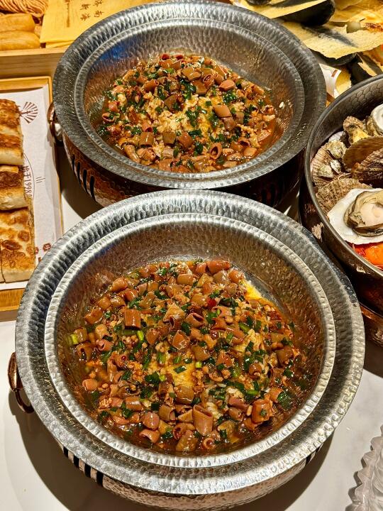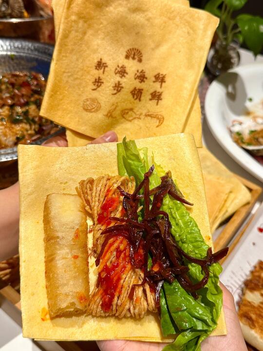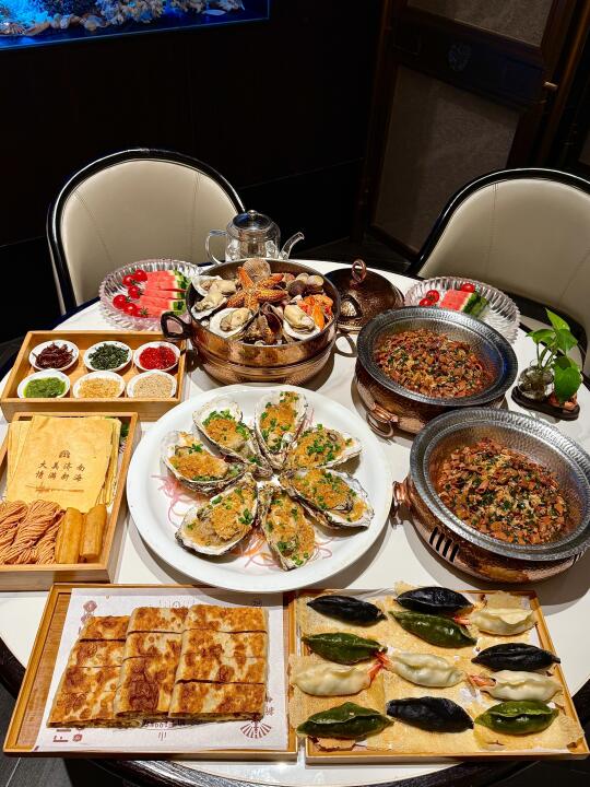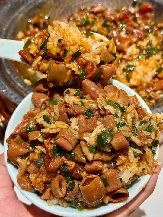 海肠捞饭几乎是每桌必点!!一整盘份量挺足 海肠汤汁很浓郁,海肠吃起来也脆脆的,跟米饭拌开后香鼠了!! 全家福锅贴,锅贴底部脆脆的 有大虾的、墨鱼的、素三鲜的 新海渔港济南济南美食济南攻略大声安利本地美食吃喝玩乐