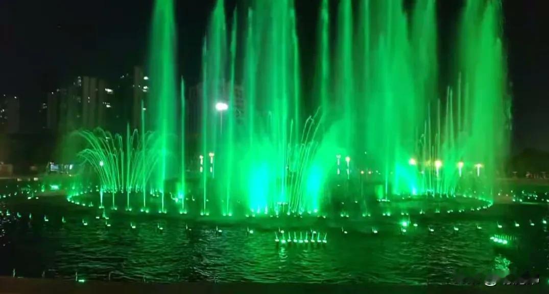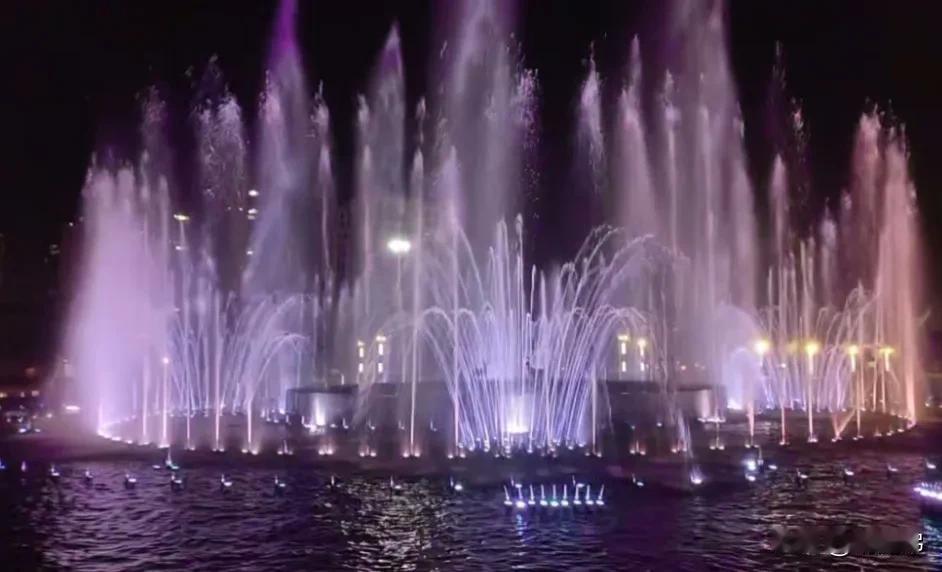 梦幻蓝光喷泉,夜晚的视觉盛宴!💙✨音乐喷泉光影秀