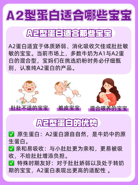 我家小宝是个“玻璃肚”,长肉肉也慢,之前跟同龄人一起玩被说小小个😭,家里老人也“瘦瘦虾”念个不停,整的我挺焦虑。于是决心给小宝选一款好吸收且能帮助长肉肉的奶粉。 - 咨询了很多专业的朋友👬,也自己对比了很多市面上的品牌,最后看中了两款奶粉:a2至初和合生元派星,都是在好吸收奶粉类目里面比较热门的,纠结到底应该选哪一个🤔 - a2至初 💟奶源地:来自新西兰黄金牧场,奶源纯净,100%A2型生牛乳一次成粉,牢牢锁住丰富营养 💟吸收力:仅含跟麻麻🍼同款的A2型蛋白,对玻璃肚宝宝来说特别亲和友好,不造成肚肚消化负担,让后续营养吸收更加“顺畅 💟自护力:A2型蛋白还能搭配高纯优量的乳铁蛋白,双方强强联手,组成黄金自护CP,让宝宝自护力从此活力全开,不怕宝宝容易中招 - 合生元派星 💟奶源地:法国牧场,脱脂牛乳 💟吸收力:主打好吸收的天然乳脂,搭配GOS益生元,维稳玻璃肚肚 💟自护力:乳桥蛋白LPN+HMO,激活宝宝自护力 - 两款奶粉都各有优势,妈妈们可以根据宝宝体质情况选择。考虑到我家靓仔身在广东,体质湿热,所以肚肚消化力需要加强,所以我给宝宝安排上a2至初,主打A2型蛋白,呵护娇嫩肚肚! 综合对比两款奶粉,都可以说是好吸收奶粉的实力派。因为我家是广东宝宝,肚肚更脆皮,所以还是决定给宝宝选了a2至初奶粉,亲和娇嫩肚肚,好消化少负担。 - 家里宝宝喝着顺口,咕噜咕噜喝奶看着就治愈,玻璃肚肚也变得“乖”多了!奶量也肉眼可见 “蹭蹭”涨!体检的时候,听儿保医生直夸长得好,就知道我没选错奶粉。这段时间广东换季天气“发癫”,可咱也稳稳过渡啦 如果你家宝宝也有爱拒奶、长肉肉慢的烦恼,真心试试这款1500W+妈妈好评的奶粉,说不定就能解锁宝宝健康成长的“密码”!