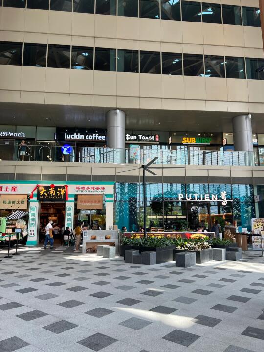 二楼有咖啡简餐、瑞幸、Fun和西门街