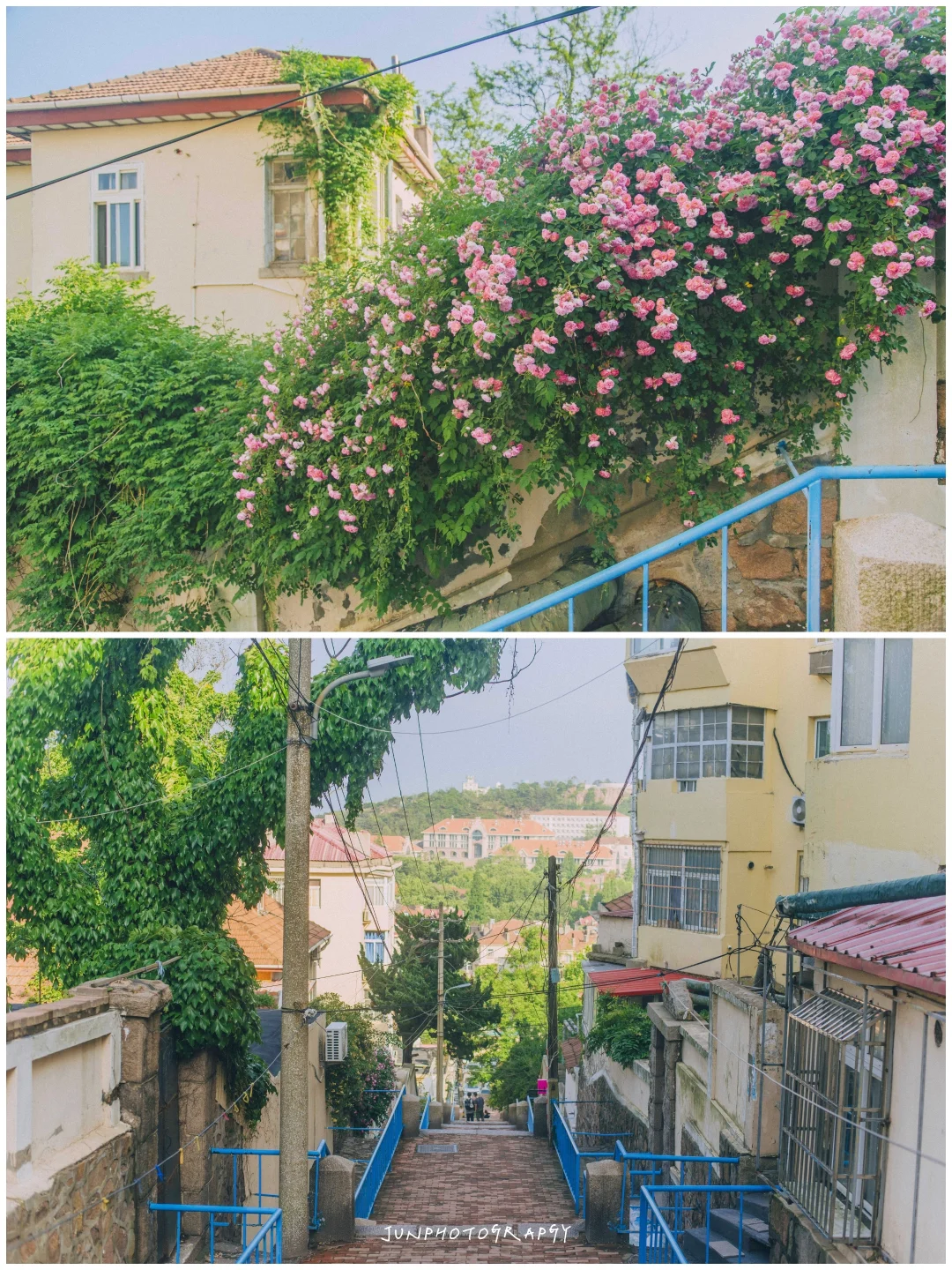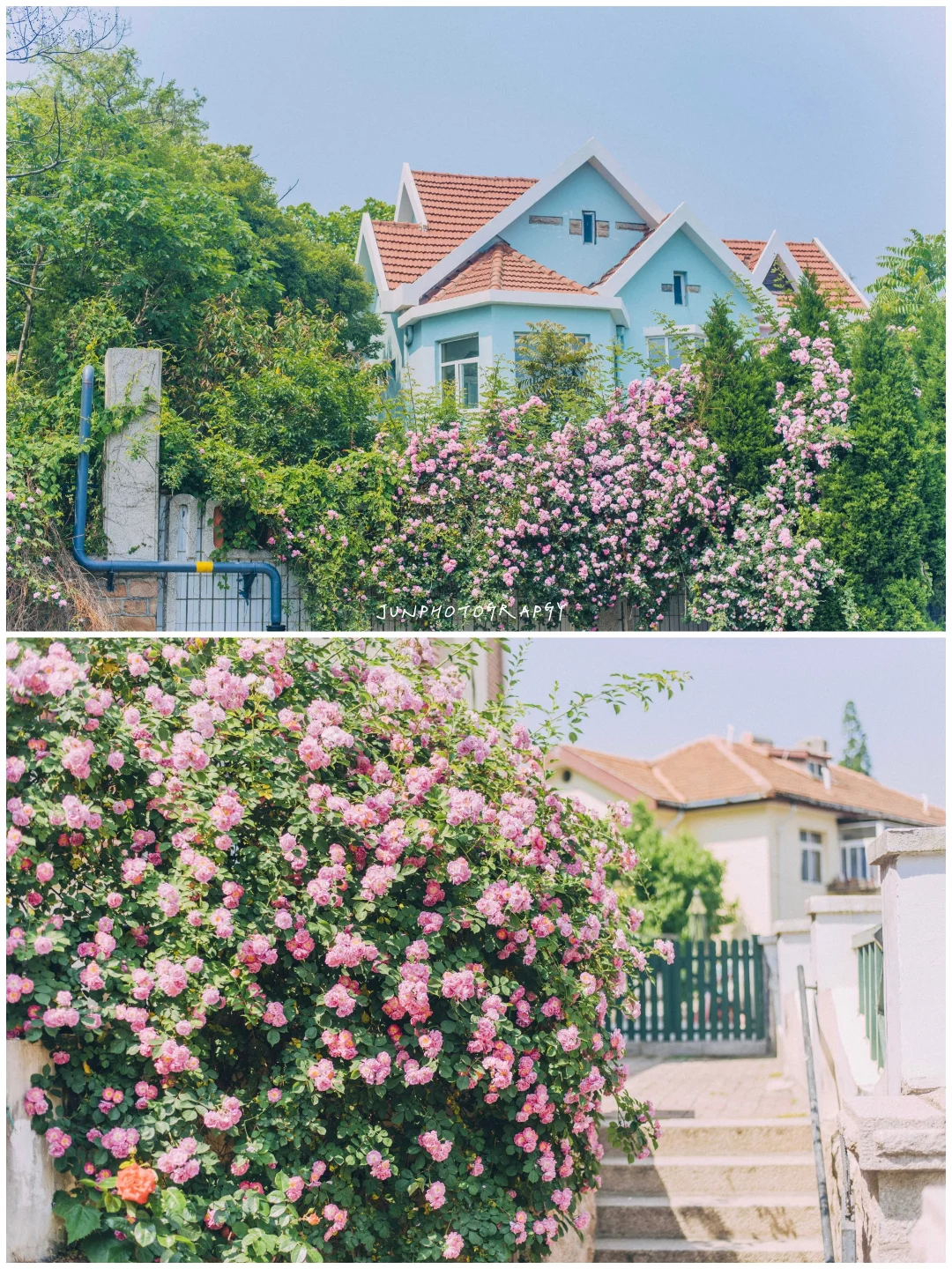 p8-12,5月中旬的蔷薇,分别是鱼山路福山路,白沙河,华山路,龙口路,太平角公园,莱阳路,信号山支路。