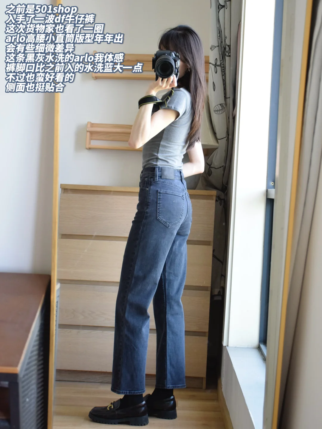 这次几条有一条滑铁卢了(穿上略微滑稽hhh),另外三条我觉得都不错,一是Arlo水洗黑色(想要的尺码和长度只有瑕疵款了,瑕疵是大腿前侧一个小洞,不过看着像故意做成这样的,不明显),二是工装牛仔阔腿裤,三是雪花水洗蓝直筒小阔腿。