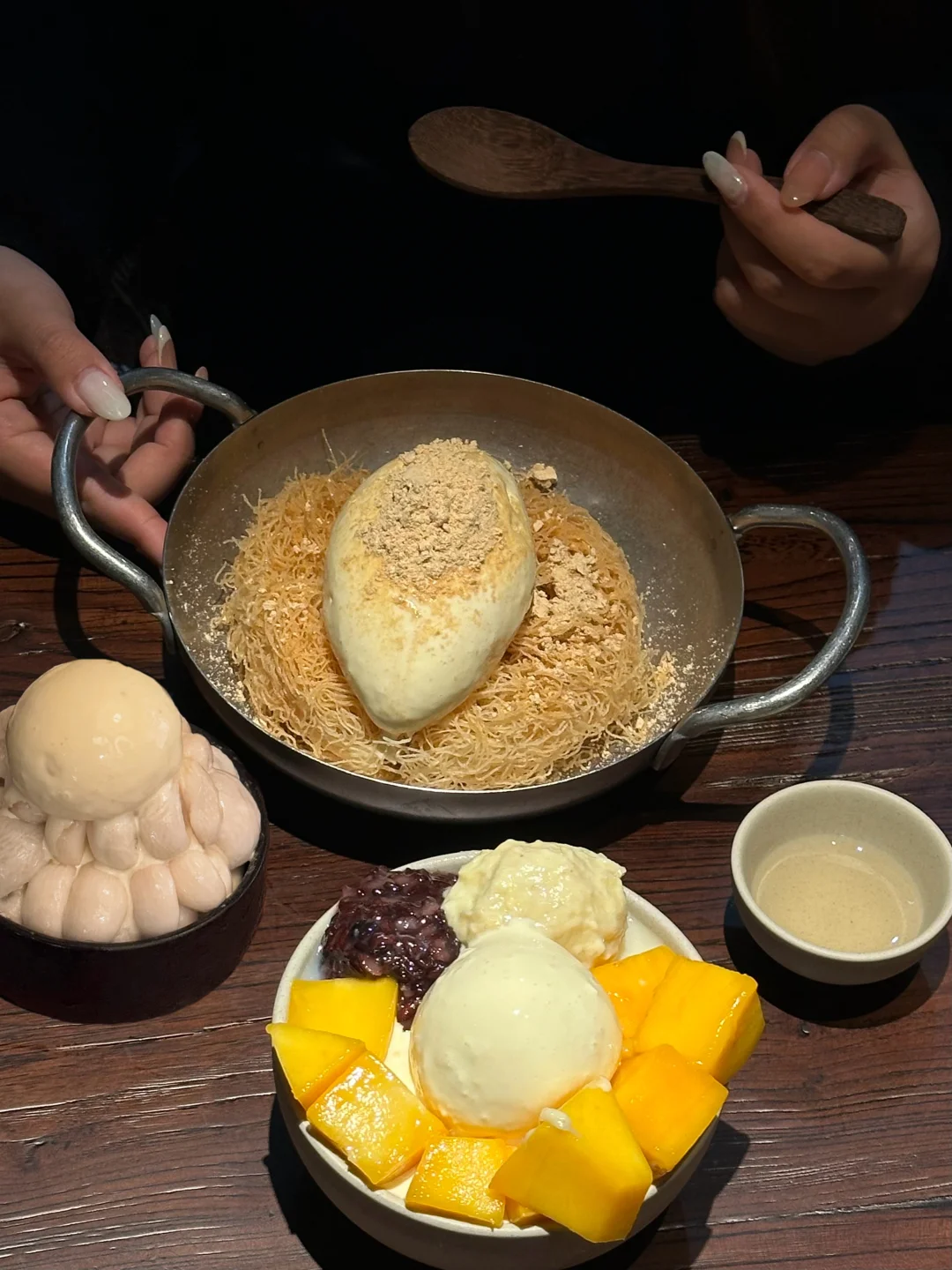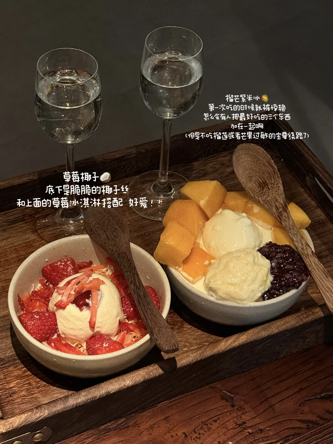 手剥山竹椰子冰淇淋🥥!没想到福州也能吃到! 新鲜的山竹果肉+椰子冰淇淋,牛奶雪冰上面铺满了山竹,奶味十足,甜味刚刚好,真的好吃😭😭一点点也不腻!整个一大碗全部都是料!超级满足!!! 铜锅油焖鸡配烤糖饵块也是反复吃的!很适合约会二人食的小店!!