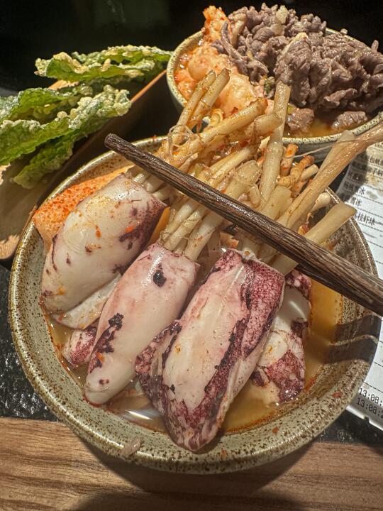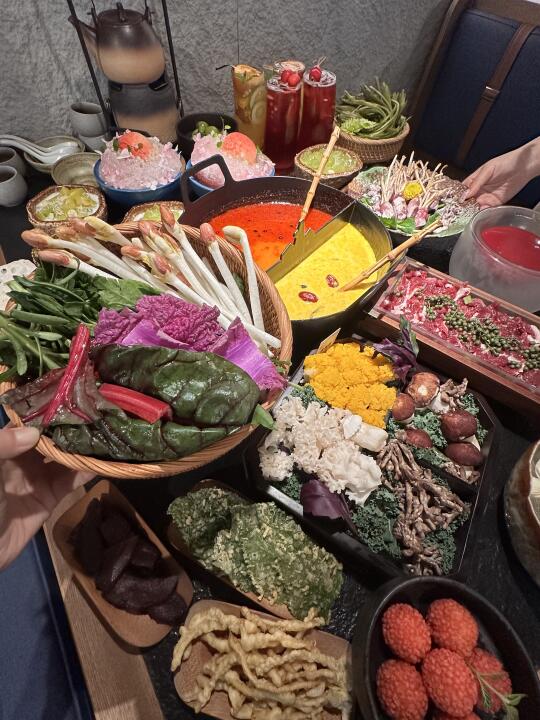 和朋友一起点了酸汤和金汤的鸳鸯锅,金汤味道也很OK!
