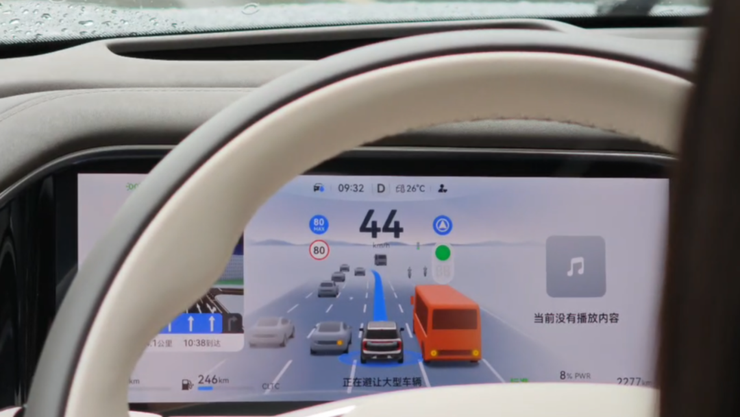 对于插电混动车,很多人可能会担心车辆“有电一条龙,馈电一条虫”,而在向往S9上完全不需要担心这个问题。在电量只有20%且选装纯电优先的状态下,向往S9的加速能力体感没有落差,高速超车时动力随传随到。