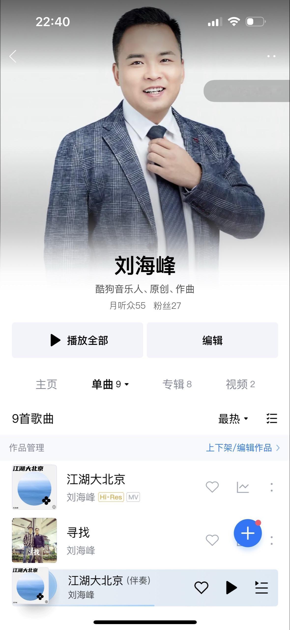 共8首我写的歌,按创作时间顺序,依次为: 1、《再见吧故乡》 2、《回忆太久》 3、《北京夏天》 4、《寻找》 5、《某人心上》 6、《走过南京》 7、《楚国的土》 8、《江湖大北京》 你觉得哪首好听?欢迎留言评论 音乐推荐 好歌推荐 音乐 音乐分享