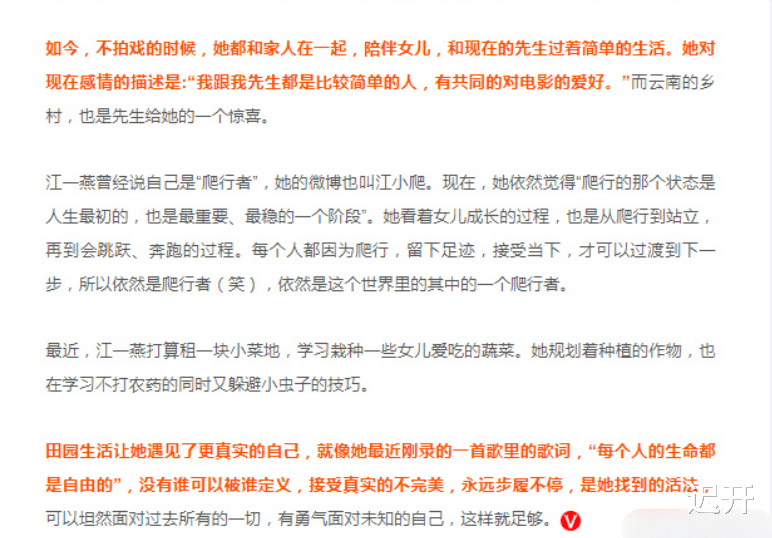 不仅如此,江一燕表示自己在乡下租了一块土地,自己种植了很多女儿喜欢的瓜果蔬菜,自己也想不用农药,还学习驱虫的方法,目前自己很享受这样的生活。从江一燕的言谈举止中就能够感受到江一燕的幸福感。