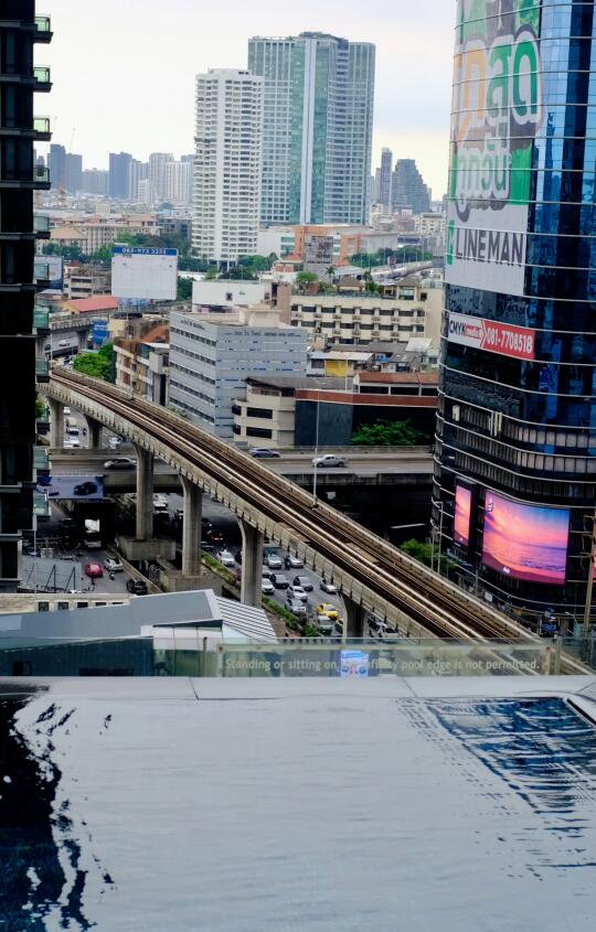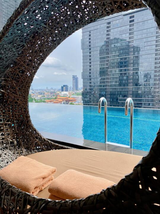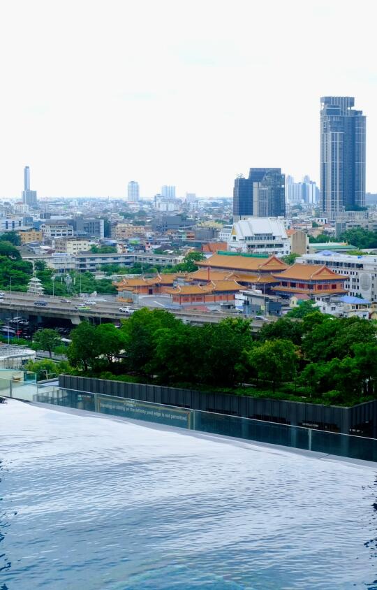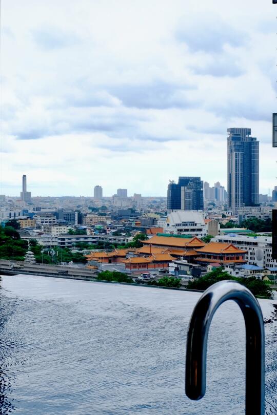 高空无边泳池超大,适合真正想认真游泳的朋友,绝不是那种小小摆拍型。最让人惊喜的是,泳池正对着 曼谷地标王权像素大厦,还能俯瞰BTS轻轨在脚下穿行,白天清爽,傍晚氛围感直接拉满,晚上城市灯火也很有feel✨。