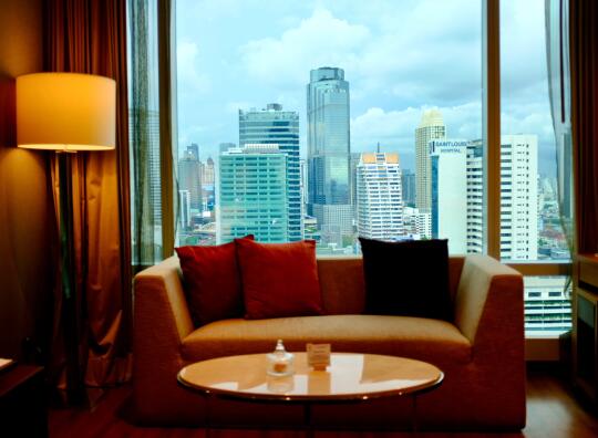 酒店Lounge视野开阔,是俯瞰Sathorn区的最佳位置之一。坐在靠窗沙发,来一杯鸡尾酒,看夕阳慢慢落下,是这趟旅行最惬意的片刻。🌄