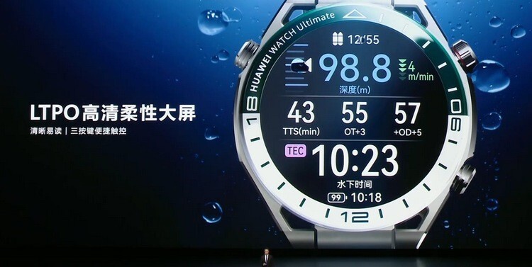 表壳部分采用坚固非晶锆合金材质打造,屏幕覆盖蓝宝石玻璃,内还有创新业态金属工艺,16层防水精密架构,创新防水透声方案,可以潜水100米深,具有专业潜水模式。