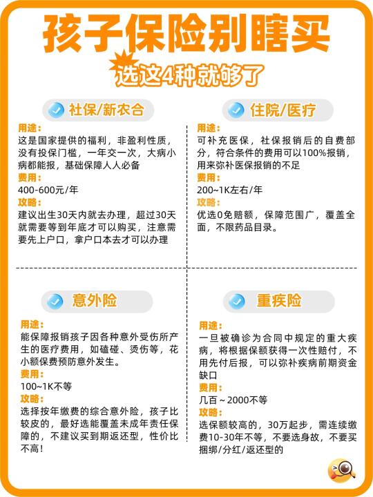 🫶少儿医保:出生3️⃣个月内办理,年缴费360-500元(地区有别),住院看病都能报,基础福利别错过!