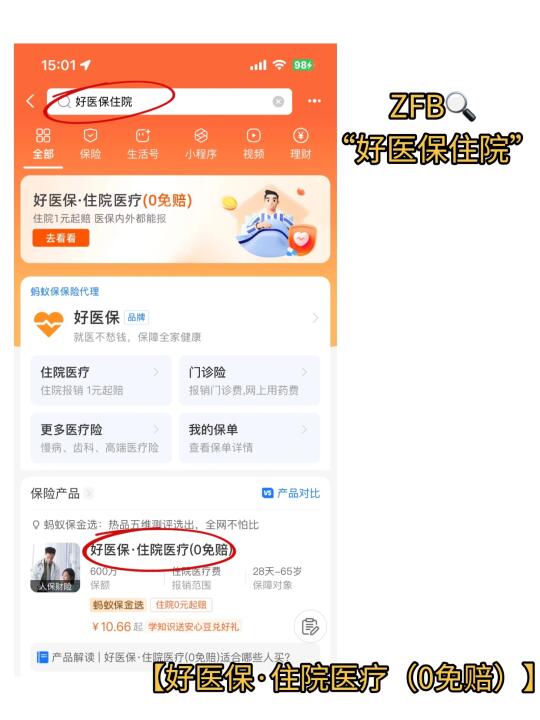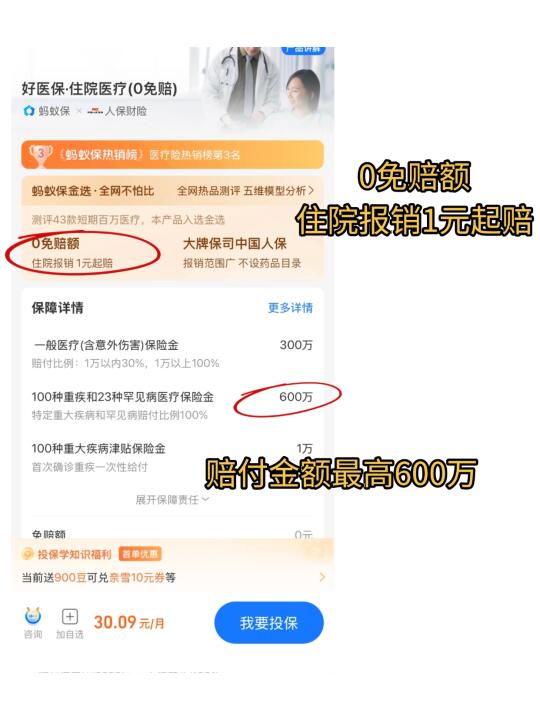 医疗险我比较推荐支付宝上人保财承保的【好医保·住院医疗(0 免赔)】,原因有3️⃣: