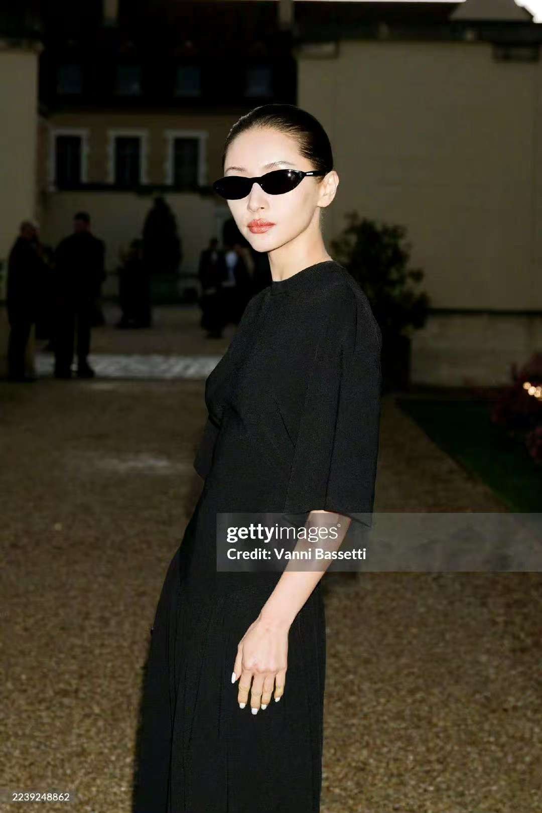 同一秀场的王子文,黑色裙装搭配黑色墨镜,神秘又暗黑,是极具气场的女王。