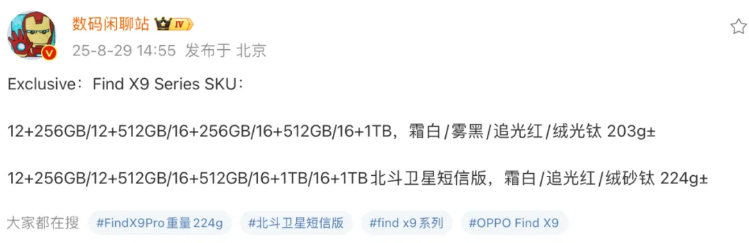 好巧不巧的是,即将在9月、10月发布的各款旗舰,包括vivo X300系列、小米16系列、OPPO Find X9系列等产品,据说也都很注重轻薄体验。