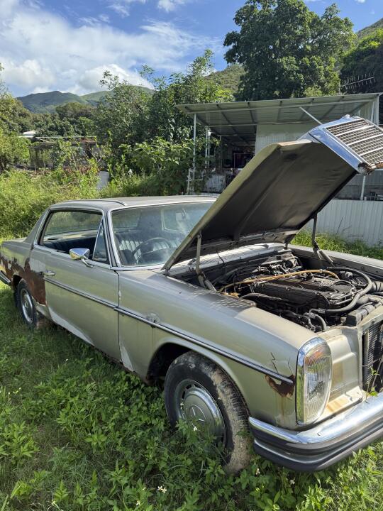 五十多年的单门W114换了电池一把着 其实只要有配件 越老的车机械结构越简单 越好整备
