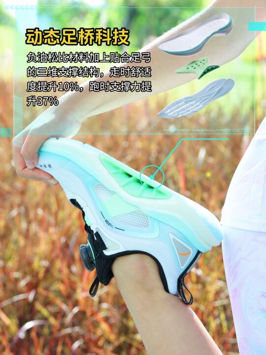 安踏全新改进的动态足桥科技,简直是为足弓量身定制的'智能小管家'!记得上周三连着两节体育课⛹️,以前回家都要喊脚疼😫,现在居然活蹦乱跳说「一点都不累」!这都要归功于它采用了负泊松比材料以及极大贴合足弓的三维支撑结构,让孩子的脚和鞋子实现毫米级贴合,日常行走时柔软缓震,剧烈运动时又能自动增强支撑力。两者协同作用,经实验室检验,走时舒适度提升10%,跑时支撑力提升37%。现在孩子跑步时就像踩着会呼吸的弹簧🏃➡️,每一步都能感受到足弓被稳稳托住,跳得再高、跑得再快也不怕了!