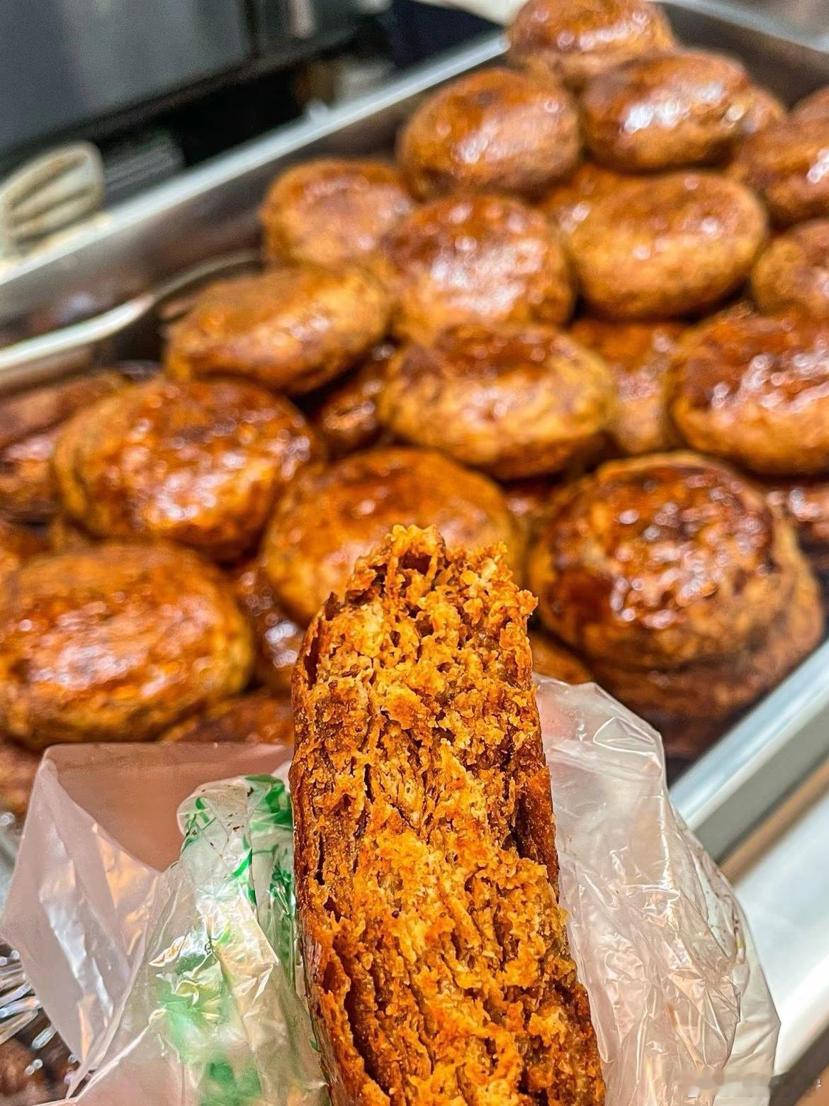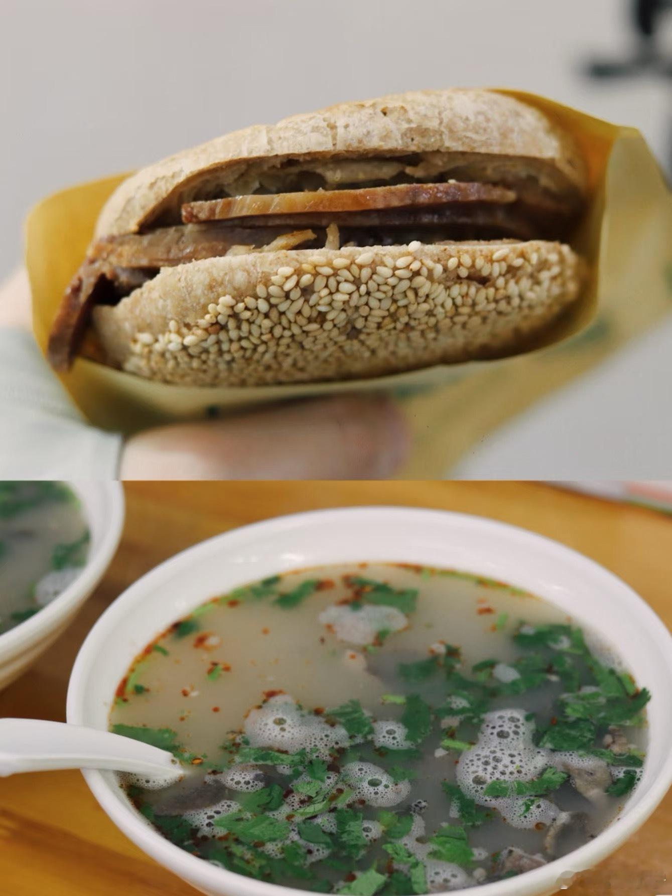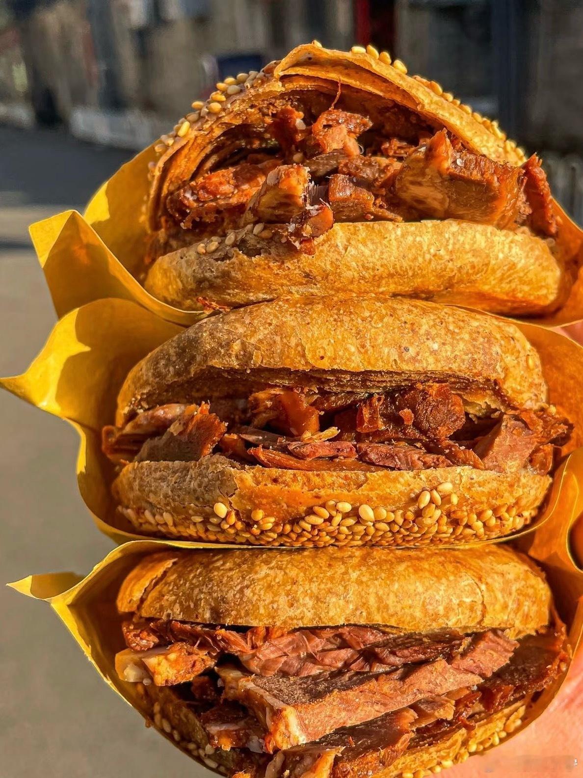 烧饼是典型的回民做法,我给它起名字叫“三麻子”麻酱➕芝麻➕胡麻油,层层堆叠的口感,扎扎实实贼拉香。夹上满满的酱牛腱子,酱香入味,还有筋头巴脑的口感,谁吃谁迷糊!😋😋